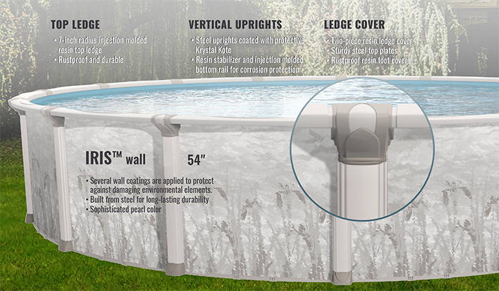 Looking for a high-quality above ground pool that will transform your backyard into an outdoor oasis? Look no further than the 15′ x 30′ Oval 54″ Deep Vancouver Above Ground Pool Kit with its Iris pattern walls and beautiful gray-tone colors.