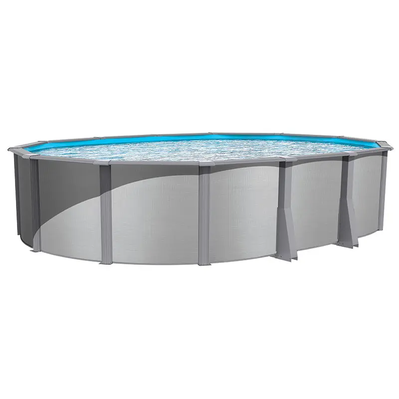 A 16′ x 28′ Oval 52″ Silver Mist Above Ground Pool Kit will be the cornerstone attraction to your backyard vacation area. Everyone surrounding and enjoying the Silver Mist will stand (or swim) amazed at the strength and integrity of the pool. The pool walls are corrugated for increased durability and resistance to ice and impact damage. They feature a self-supporting omega stabilizer bar developed to simplify homeowner installation.