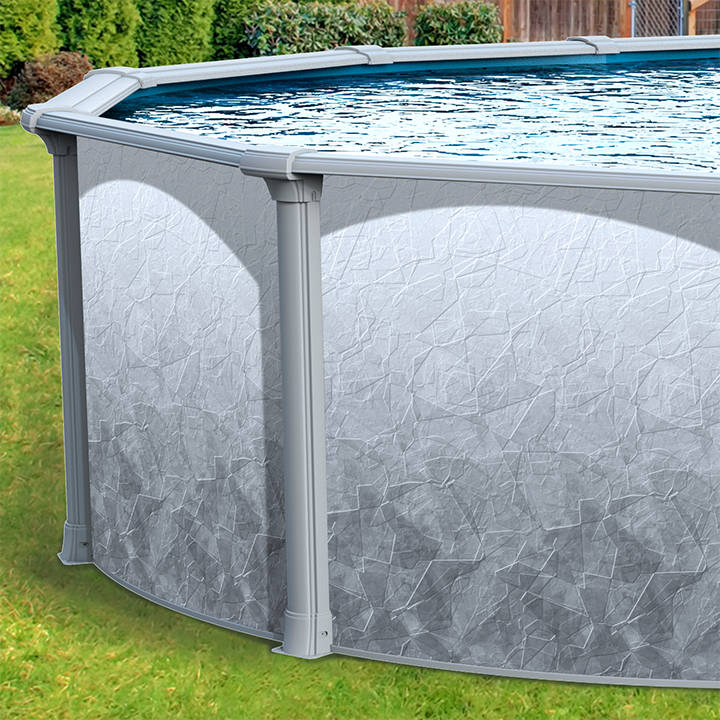 Looking for a high-quality above ground pool that will transform your backyard into an outdoor oasis? Look no further than the 18′ Round 52″ Deep Seafield Above Ground Pool Kit with its grey tone geometric wall pattern!