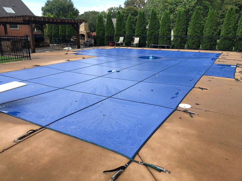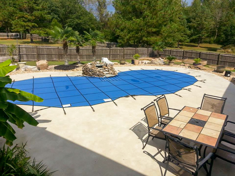 For a clean pool at opening, the solid safety cover is the best choice. A standard mesh safety cover has a densely woven mesh that will filter most debris and blocks up to 95% of sunlight, where a solid vinyl safety cover will block 100% of sunlight.
