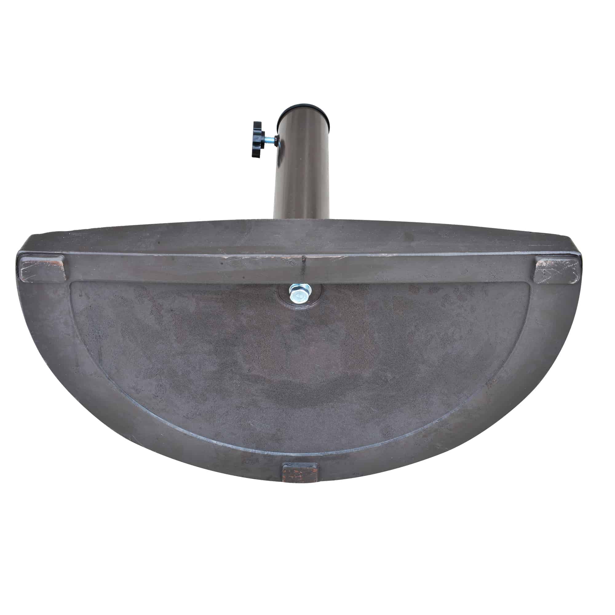 This attractive 20-lb Resin Half-Round Umbrella Base from Island Umbrella can hold up to 9-ft half round or square patio umbrellas. This base is designed to be placed up against a wall, window or sliding door where a full umbrella base just won’t work. Crafted from impact and weather-resistant blended poly resin, this base won’t rust or crack. It features a brown textured corrosion-resistant finish that will never need to be repainted. The rust-resistant, powder-coated stem design has a built in tension knob to firmly secure your umbrella pole in place. Accommodates up to 1.89-in diameter poles. An affordable alternative to more expensive metal base designs!