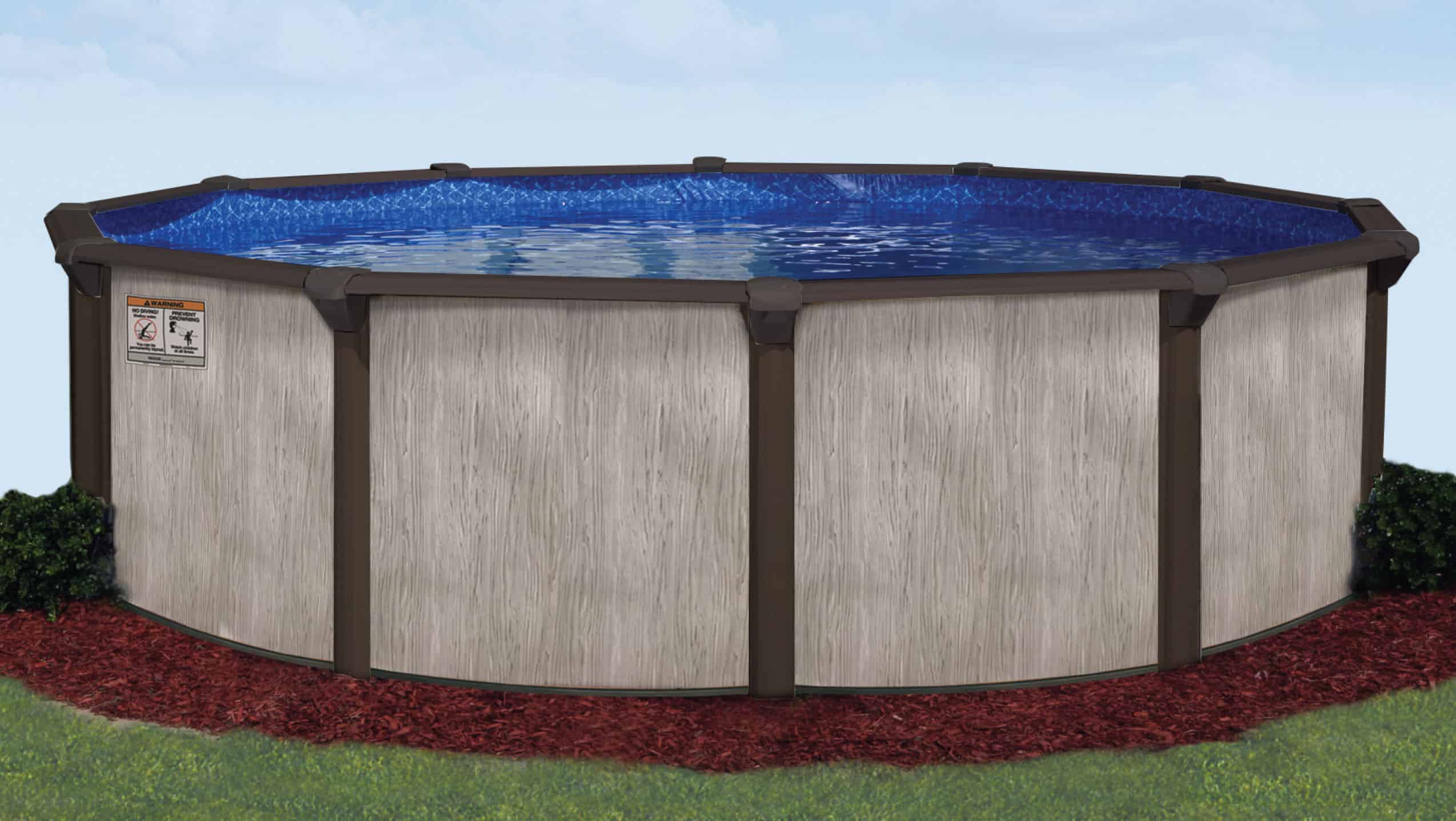 With sophisticated RESIN Top Connectors and Steel Top Rails, the 21′ Round 52″ Deep Brentwood Above Ground Pool Kit would be a great addition to any backyard! The Brentwood offers Corrugated Pool Walls that give you maximum flexibility and vertical strength in addition to a staggered bolt wall for the best stability. With all these features, you can be sure that you have a pool that will last you for summers on end and a lifetime of memories. This pool is a customer favorite for its classy structure and feel and also the beautiful wood grain wall pattern with a rich cocoa brown frame will complement any backyard setting!