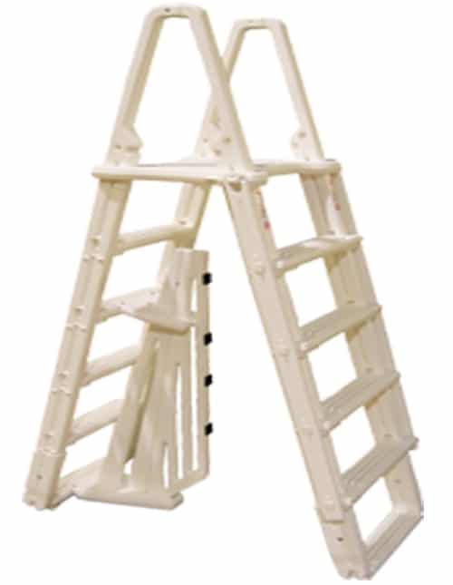 - Evolution 7100X A-Frame Swimming Pool Kit Ladder with Barrier to prevent entrapment behind the ladder.