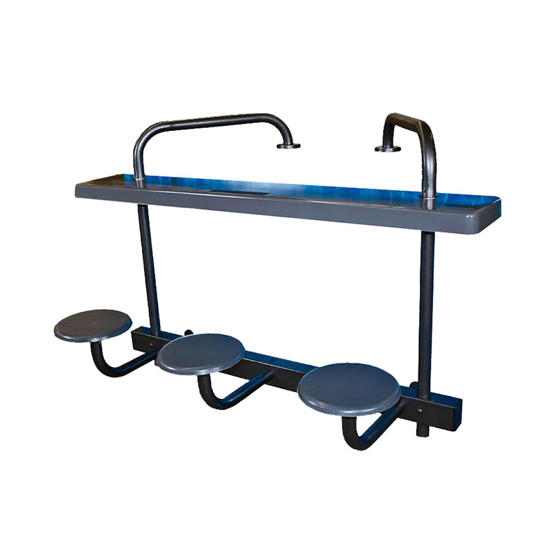 Upgrade your pool experience with the Over the Edge 3-Seat Bar Top Table. The table and bar stools have been designed for comfort, safety and the best in-water experience. The pool bar table hangs Over the Edge of the pool using standard ladder holes or new mounts can be added to any pool deck.