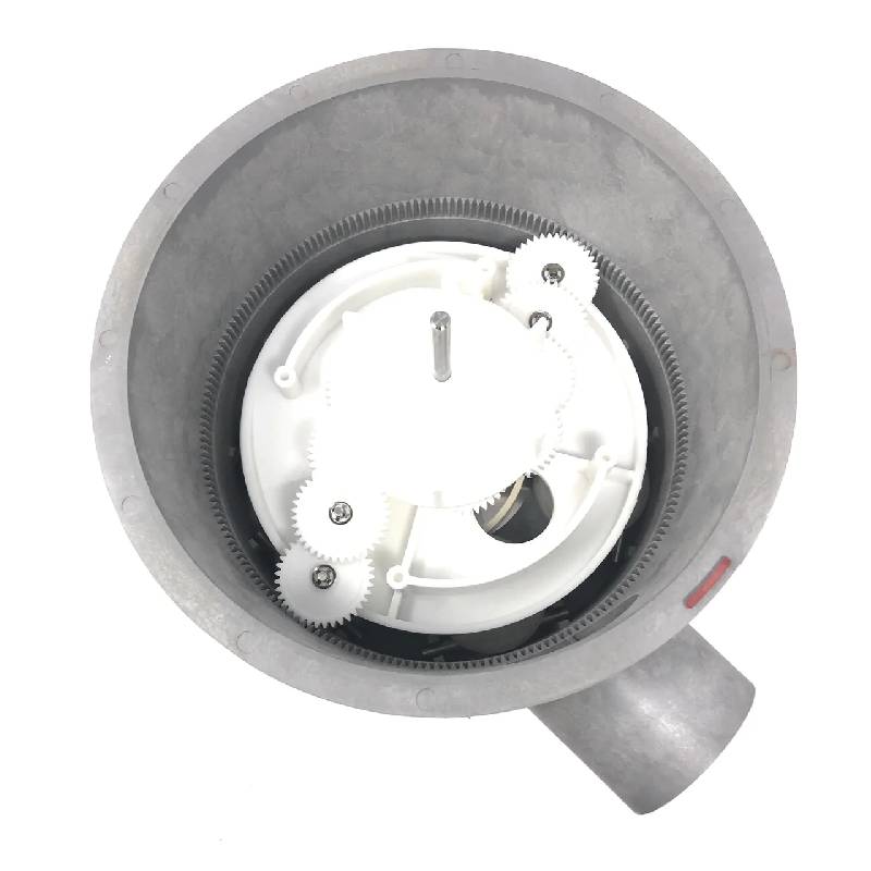 - As water enters the cleaning valve, the top impeller spins the gear assembly around the housing.