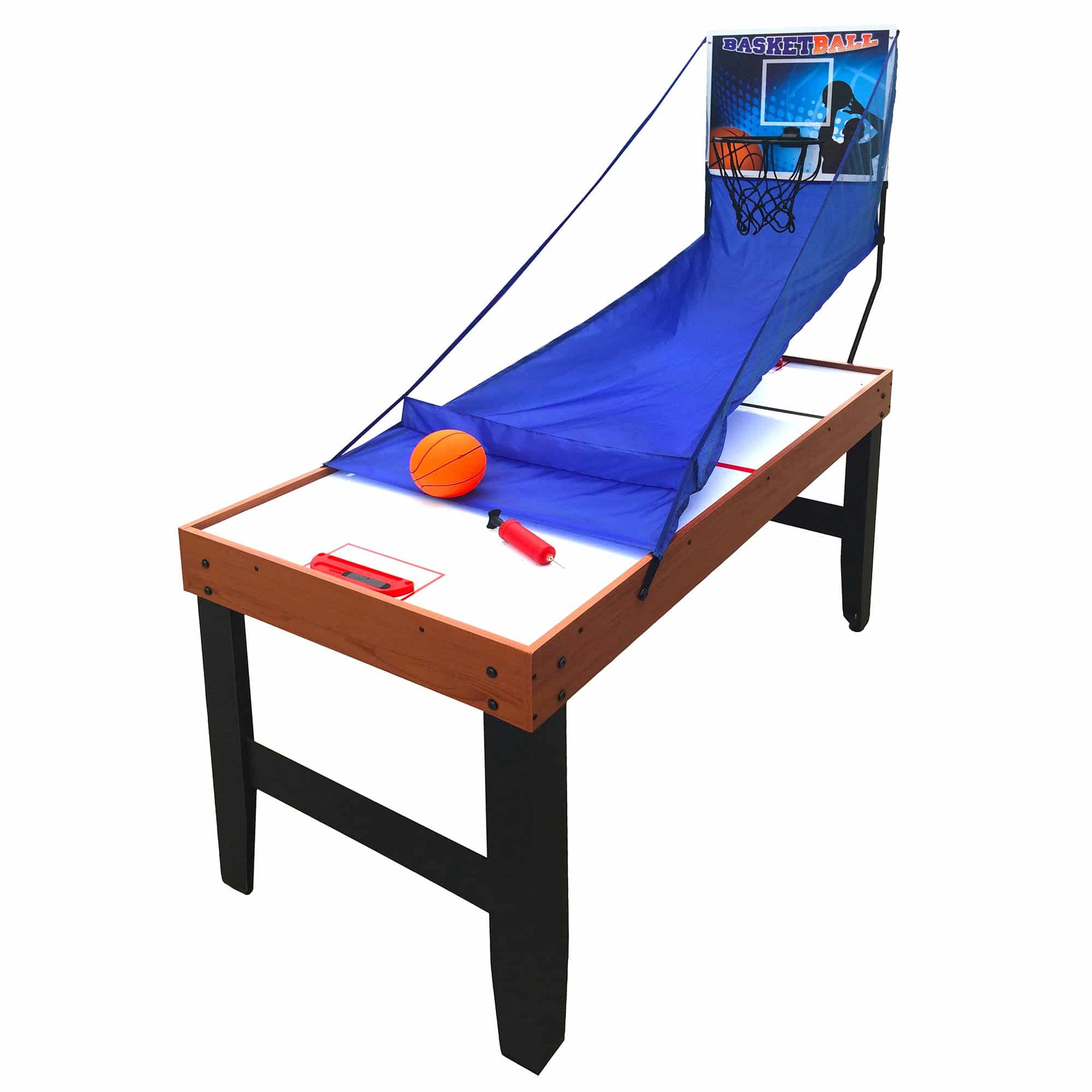 This Accelerator 54 In 4-in-1 Multi-Game Table’s dry erase board surface doubles as a desk or craft area – a real motivator for kids to complete their homework so they can enjoy one of the 3 table games. The Accelerator easily converts to a table tennis table with one flip of the top. Simply remove the top and you have an air hockey surface featuring the new PERMASEALED blower system that generates maximum play surface air flow. The puck literally floats on a cushion of air providing fast smooth table play. The basketball assembly attaches quickly and easily converting the game to an arcade style basketball game in seconds. L-shaped MDF certified legs with cross support beams provide a rock solid table foundation. Adjustable leg levelers make quick work of leveling the table on any surface. Go head-to-head against friends and family by choosing any one of the three awesome game variations. A versatile table designed to provide hours of gaming fun! 180-day limited warranty.