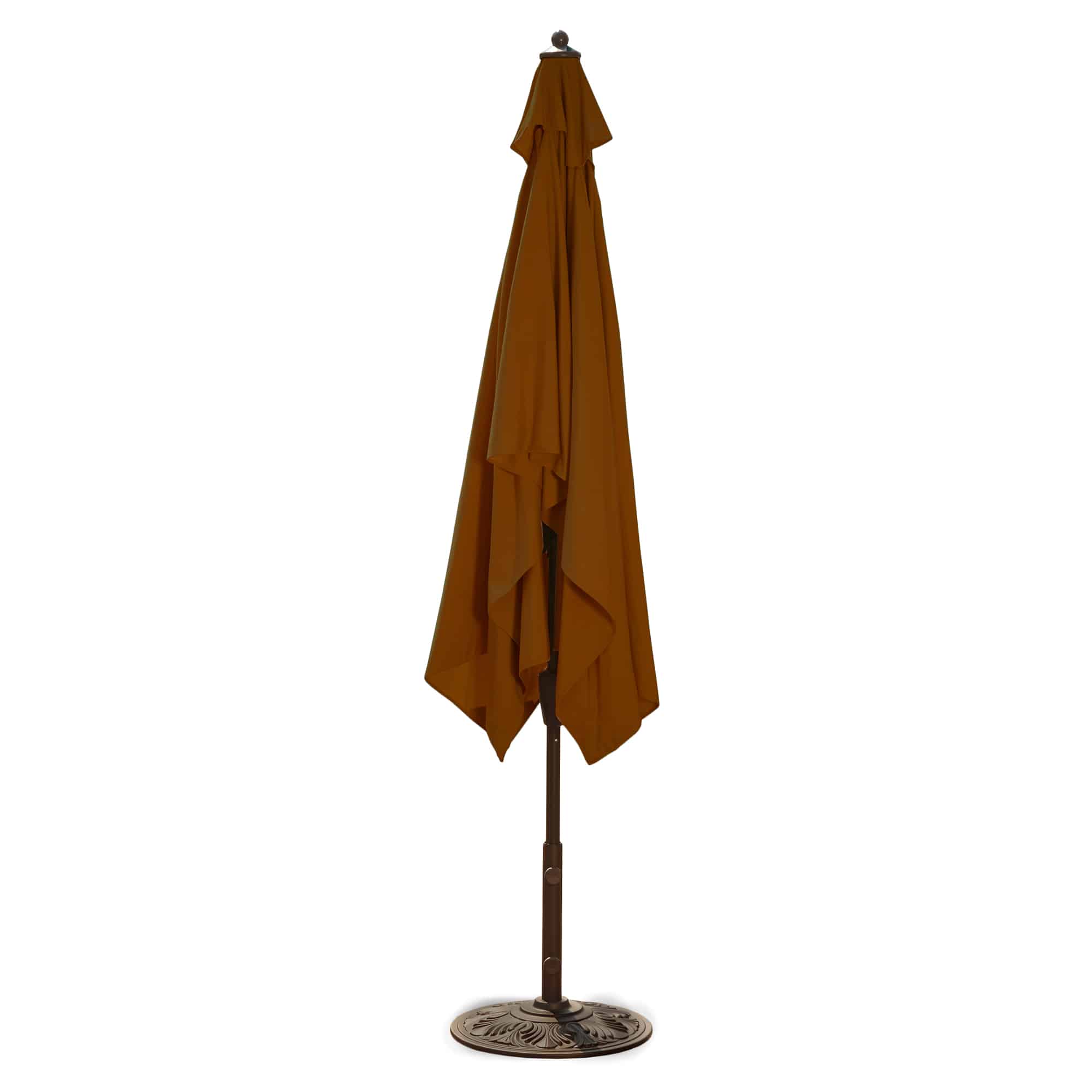 The Adriatic 6.5-ft x 10-ft Rectangular Market Umbrella in Sunbrella Acrylic provides a smart and stylish way to shade your oval tables all summer long. This umbrella is designed for easy operation. Simply turn the crank handle until the canopy is completely open, and then continue cranking to automatically tilt the canopy to obtain your desired shade. The durable anodized-aluminum, rust-resistant pole with the convenient auto-tilt feature has a rich bronze-colored finish. The 6-rib canopy, covered in weather and fade-resistant Sunbrella acrylic fabric, sports a single wind vent that allows air to escape freely and limits wind damage. Sunbrella acrylic fabric canopy backed by 5-year warranty; 3-year warranty on pole and structure. 50-lb base recommended (sold separately).