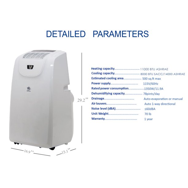 - Heat/Cool portable air conditioner keeps a room pleasant up to 500 sq. ft.