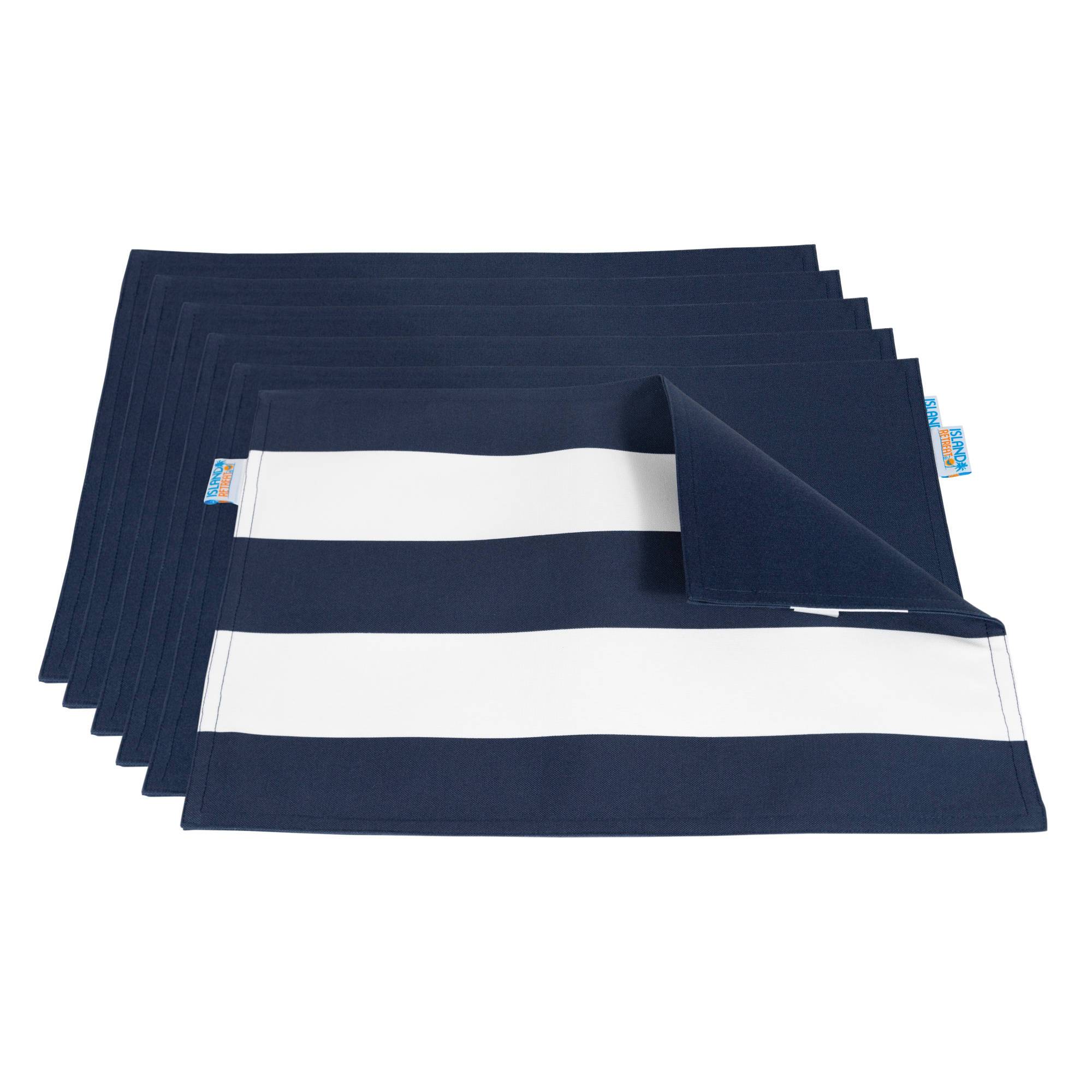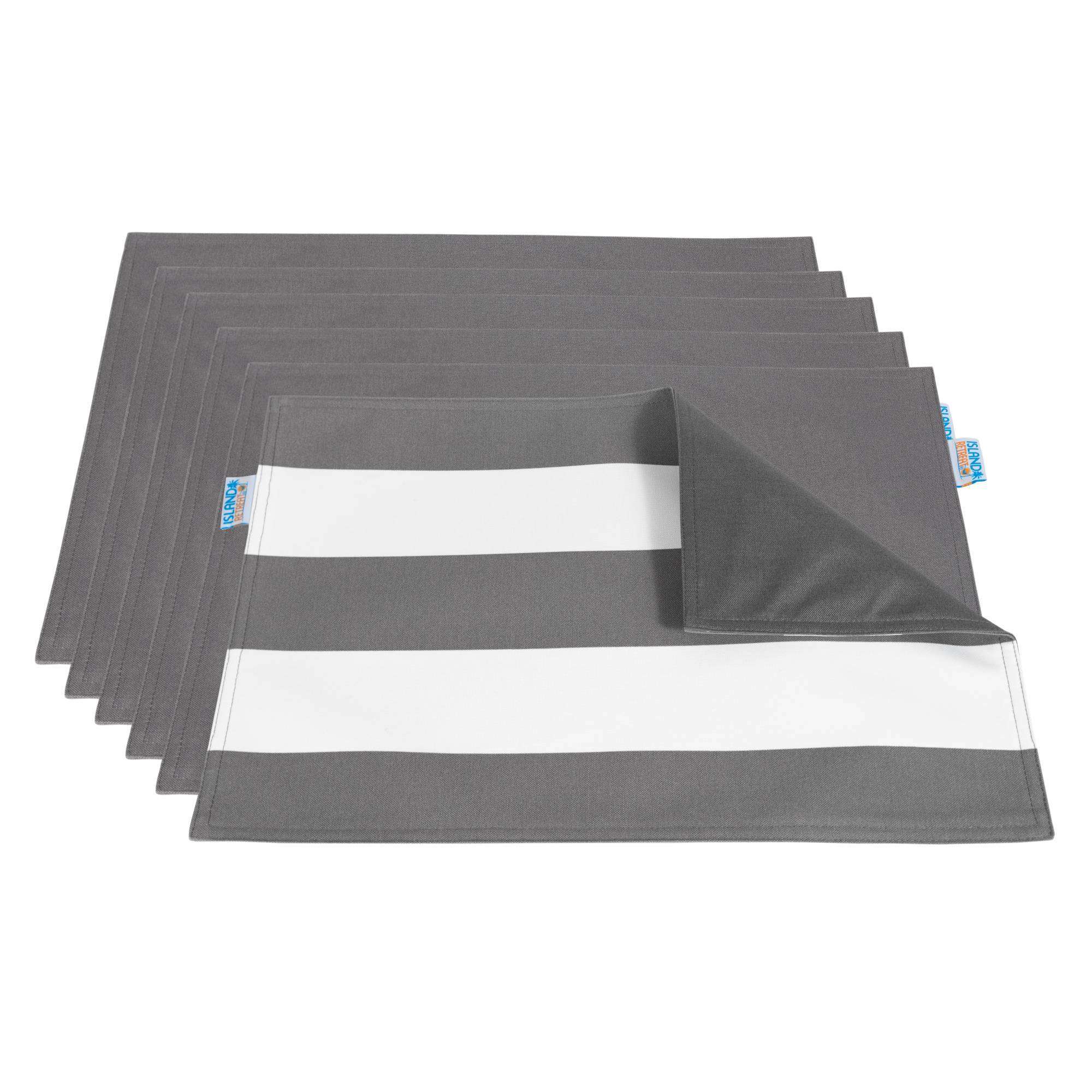 The stylish All-Weather Outdoor Reversible Table Mat – Set of 6 will add a pop of color to your outdoor or indoor dining set. Each mat is striped on one side, and when reversed is a solid color on the other side to accentuate your dining set for every day use. These reversible table mats are made from spun-poly fabric to resist mildew and moisture in all weather conditions. The fabric also contains UV inhibitors to help minimize fading in the sun. Your new set of table mats are machine washable for ease of care. Set of six.