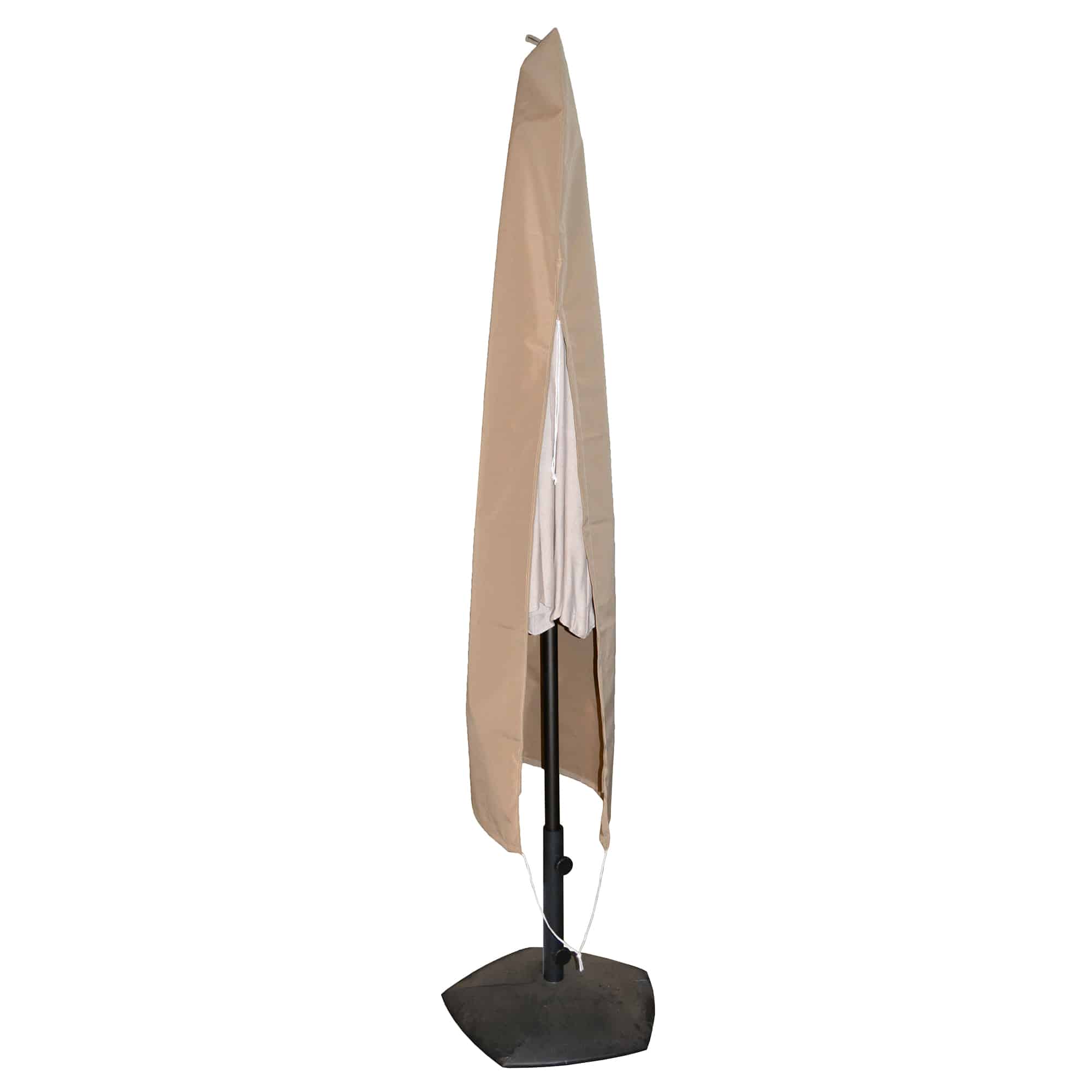 Our tough, durable All-Weather Protective Umbrella Cover is crafted from exclusive “Primoguard” polyester fabric that’s extremely resistant to the elements and will not crack or peel like vinyl. The lightweight polyester material makes installation and removal a breeze. Our all-weather covers feature draw cords to keep the cover snug and secure, industrial-strength, double-lock stitched seams for added long-term durability, and are machine washable. Available in a Sandstone color that will attractively match your patio area.