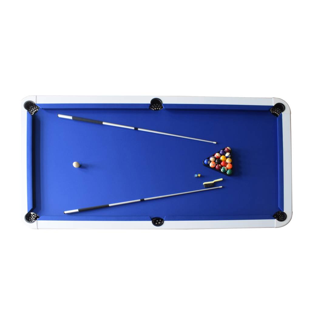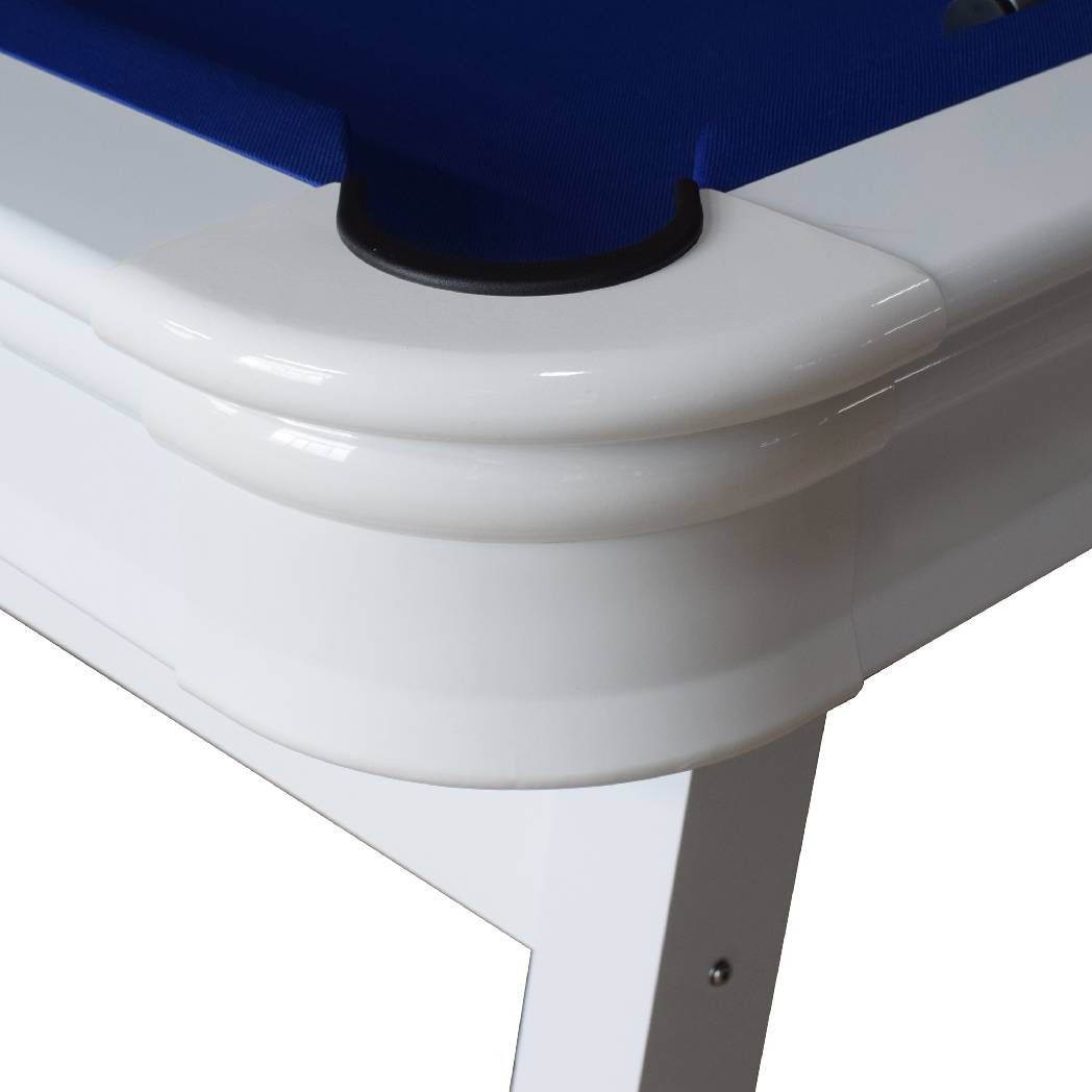 - STYLISH DESIGN – The Alpine’s sleek frame is covered in a white, powder-coated gloss, adding a luxurious look to this quality table. This brisk white look combines with dazzling, electric-blue felt to create a style that’s sure to draw the eye.
