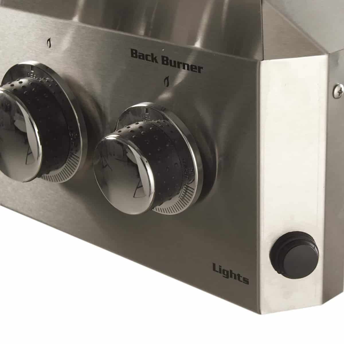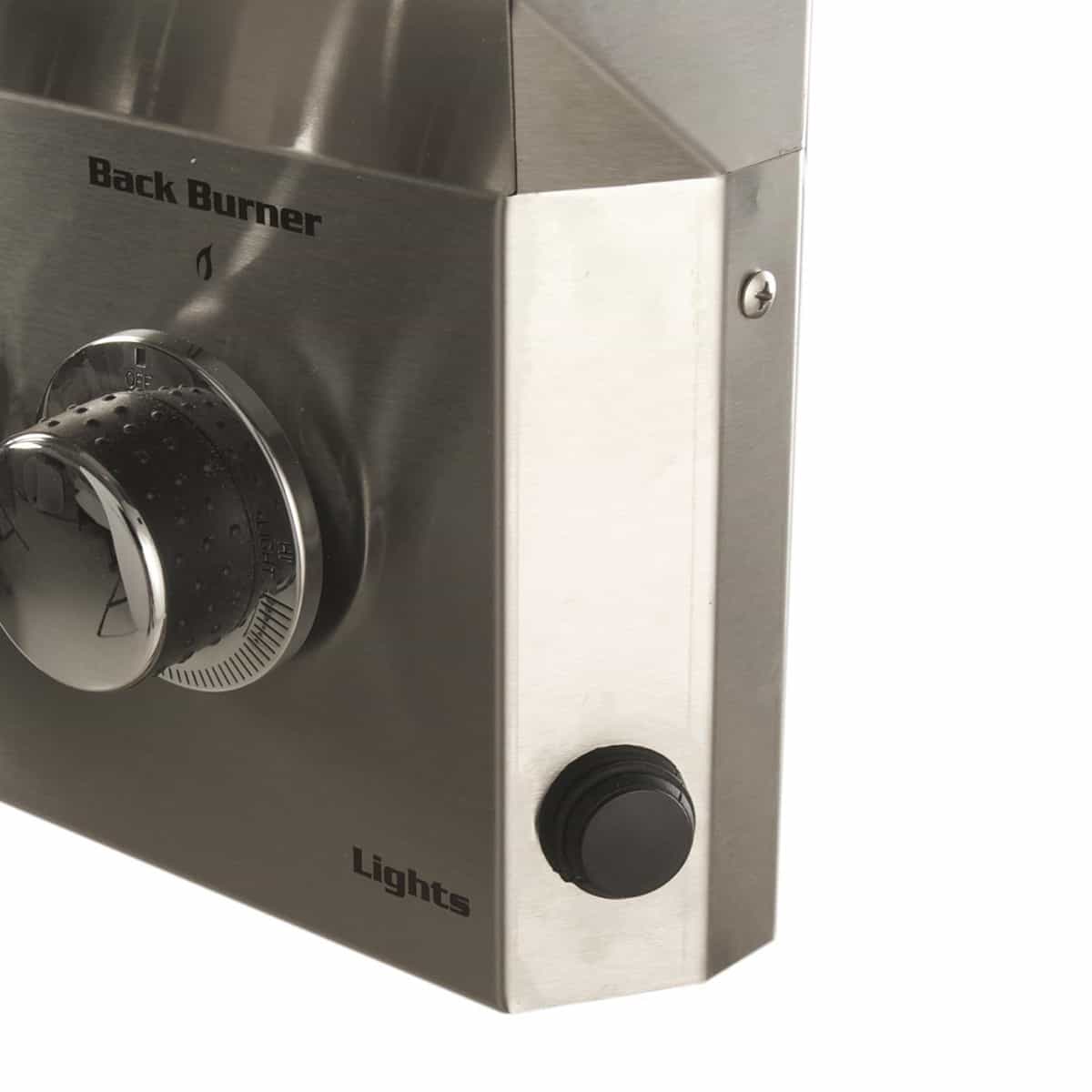 - Flush mounted brass side burner on portable grills-12,000 BTU’s