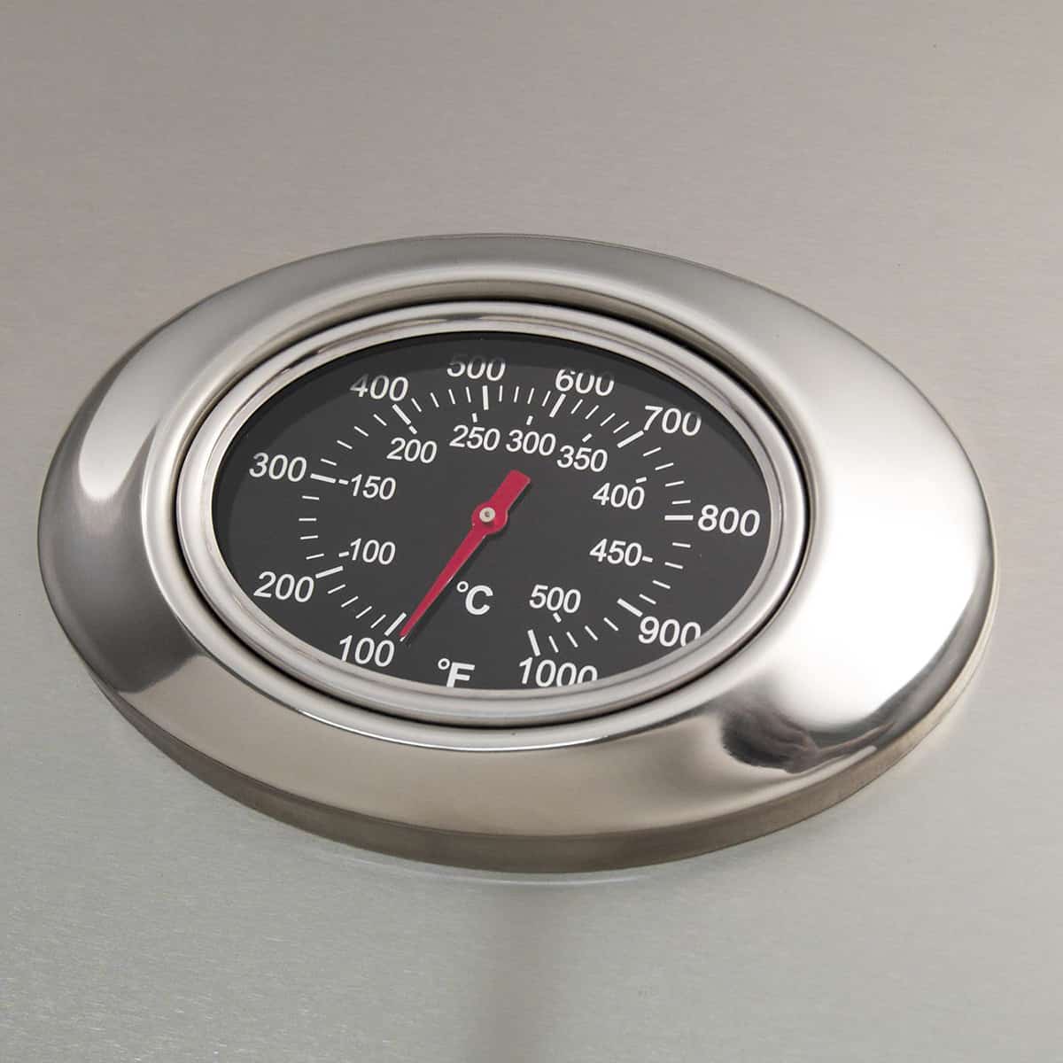 Distinctly designed for American Outdoor Grill, the analog thermometer with polished steel bezel provides a beautiful accent while providing control over the food you’re grilling.