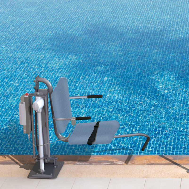 The Americans with Disabilities Act requires commercial and public pools nationwide to install an accessible means of entry into the swimming pool by anyone. This Spectrum pool lift provides people with disabilities with the ability to transfer from the pool deck to the pool water safely, comfortably and independently. These lifts are also required by many state and local governments for compliance with local pool codes and laws.