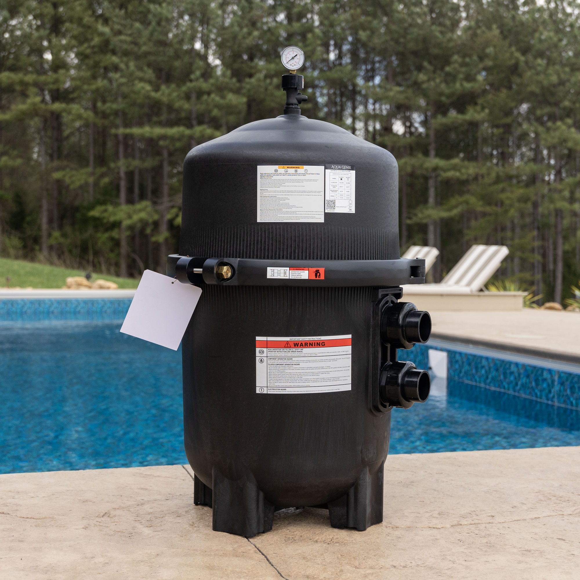 Crafted from premium materials, including a robust glass-reinforced co-polymer black housing, this system is built to withstand the harshest of weather conditions. This ensures not only durability but also long-lasting performance, so you can enjoy the benefits of clean pool water for years to come. With a flow rate of 150 gallons per minute and a maximum working pressure of 50 psi, the Aqua Genie cartidge filter delivers consistent and efficient water circulation, maintaining optimal water quality throughout your pool.