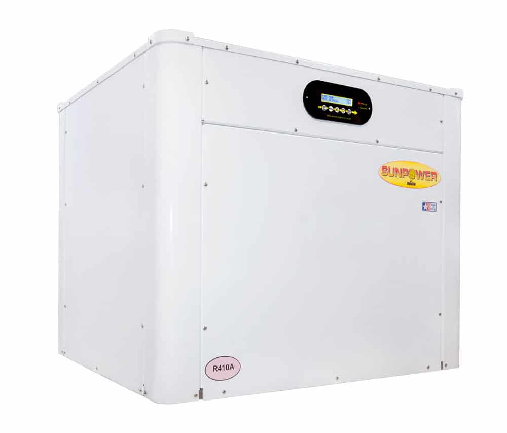 The AquaCal SunPower Heat Pump 110,000 BTU transfers FREE heat from your pool to your spa.