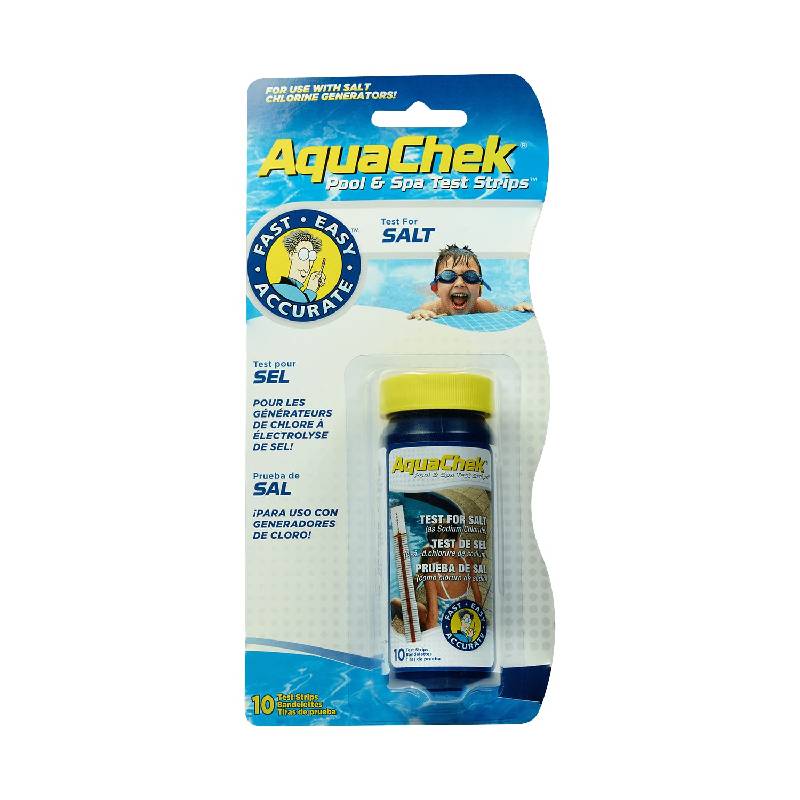 The AquaChek 561140A Salt Test Strip for: Salt (as Sodium Chloride) Ideal for customers who have salt generating systems. With the proper salt levels, you can be sure that your salt generator will be able to produce the correct amount of chlorine to keep your water clean and free of contaminants. For a clean and healthy pool, test the water at each end a minimum of twice a week!