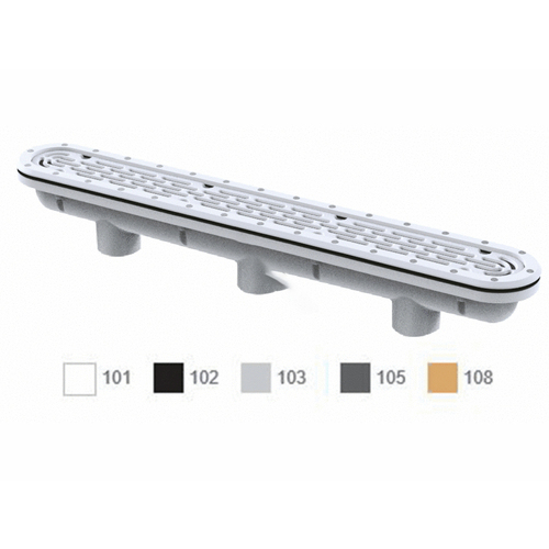 The Aquastar 32CDFLNF103 Channel Drain Flat Cover; 32 Inch, UV-Resistant Engineered Polymer, Light Gray. Cover Open Area: 25.9 sq.-Inch.