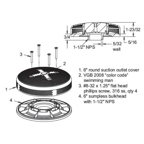 - For single or multiple drain use in gunite, steel, vinyl, fiberglass and tile pools and spas (see installation instructions)