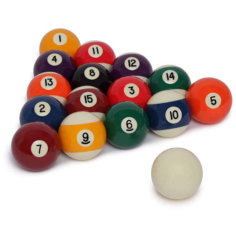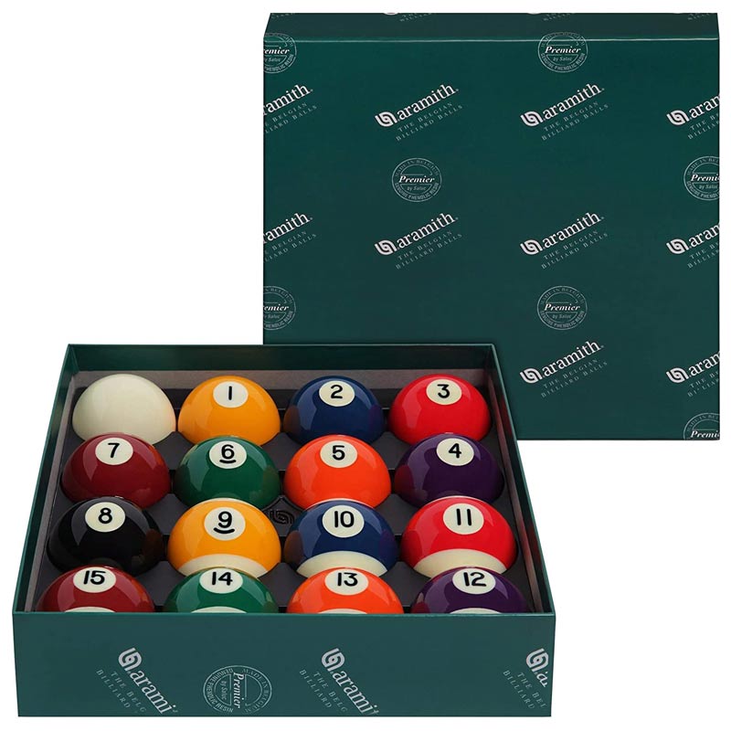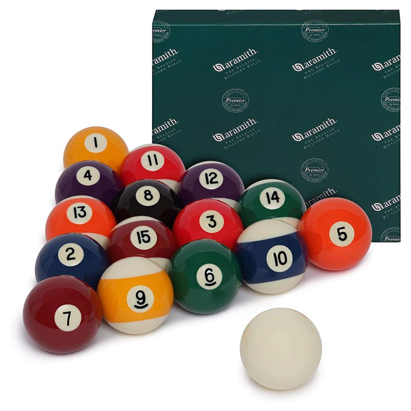 The best compromise with its classic numbers in the stripe look and tight cosmetic criteria, it is the perfect compromise between quality and price.Made of Aramith Premier phenolic resin with far better resistance longevity than polyester and other phenolic sets.High quality standards.For 8 criteria : density, balance, diameter, roundness, color, glossiness, hardness, weight.