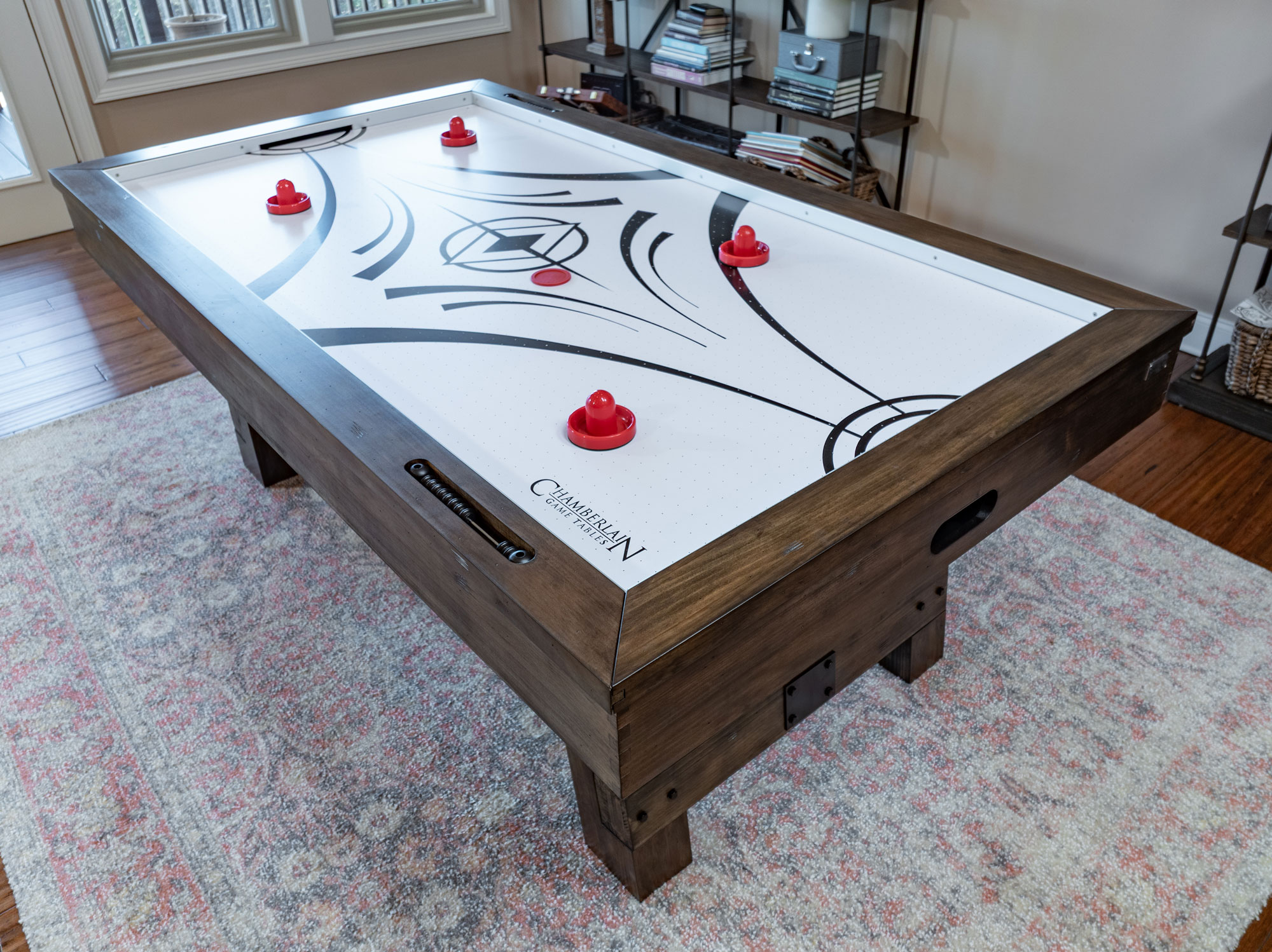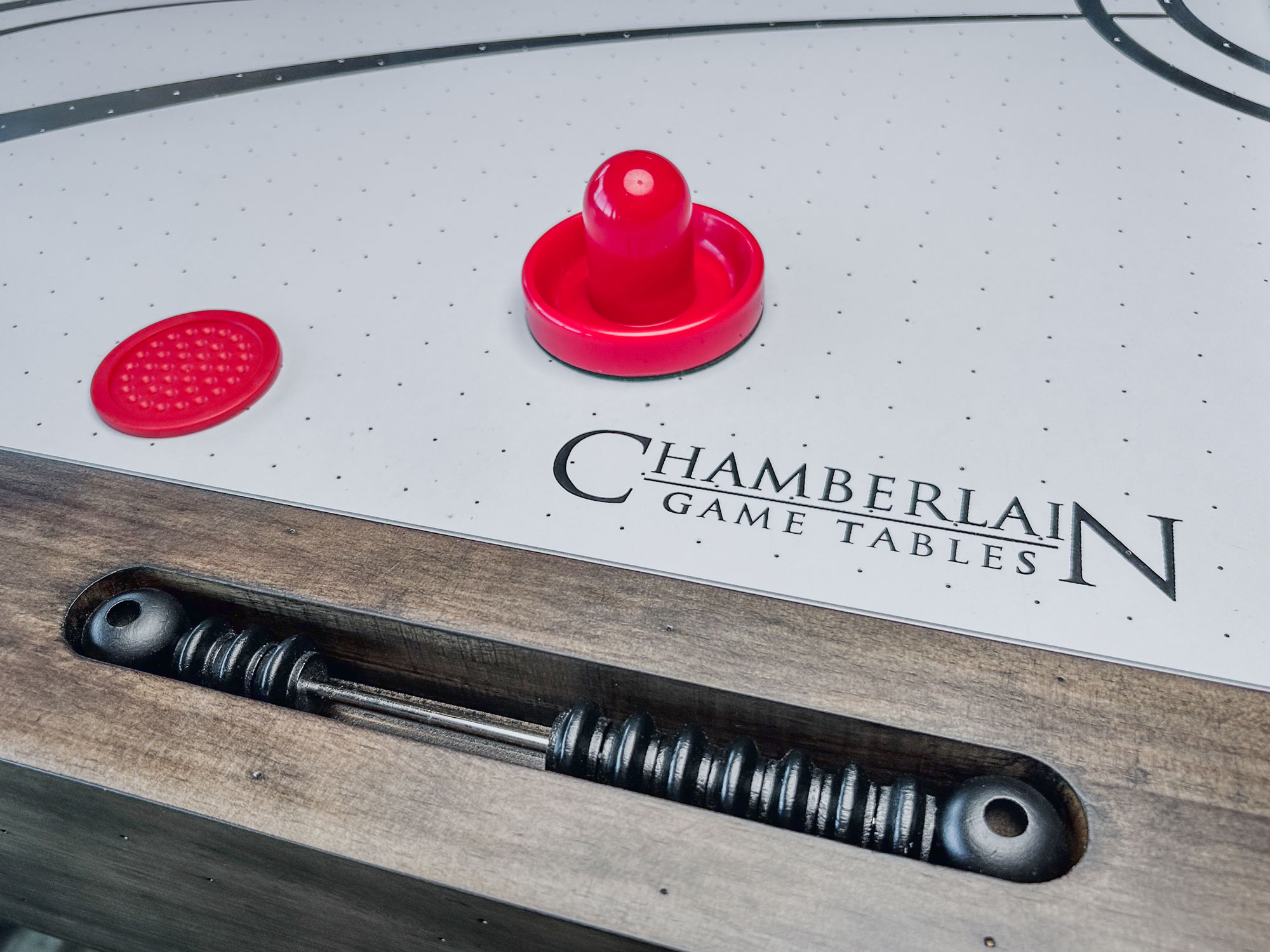 Chamberlain Game tables, continuing to redefine style and affordability yet again with the Aspen Nights Distressed Wood Air Hockey Table.