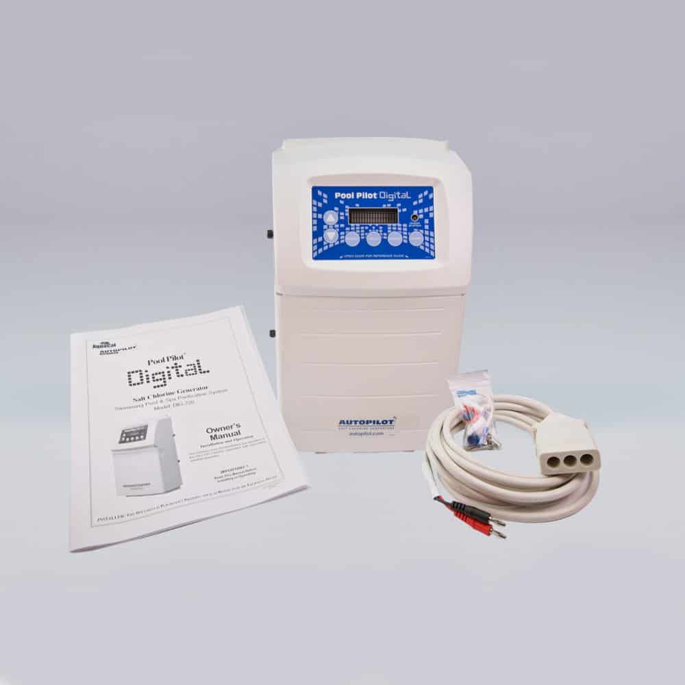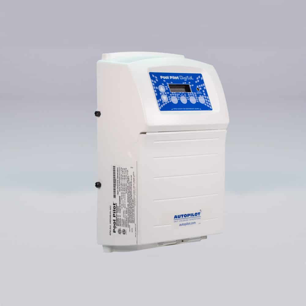 The most reliable and user friendly chlorine generator unit available. With microprocessor controls, digital read-out of pool water temperature, current salt level, purifier production level, soft reverse cell cleaning cycle and boost cycle, the Pool Pilot® Digital is a technologically advanced unit. The easy-to-read digital readout on this in-line unit even tells you how much salt to add should it run low. The Pool Pilot® Digital has a patented temperature compensation feature that actually adjusts chlorine production according to the demands of the water temperature and operates in water temperatures up to 104°F. It can purify pools up to 80,000 gallons.