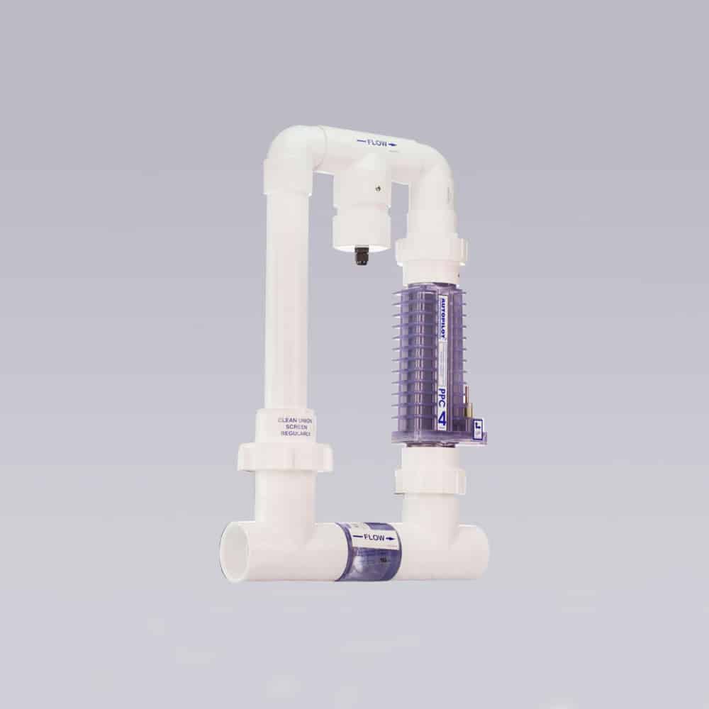 - Inline Strainer – Protects the Tri-Sensor and the Cell from debris that may bypass the filter and obstruct either component. The location of the strainer in the connecting union makes it easy to remove for periodic cleaning.
