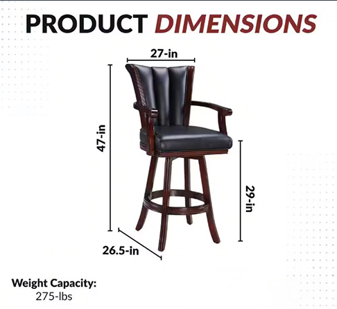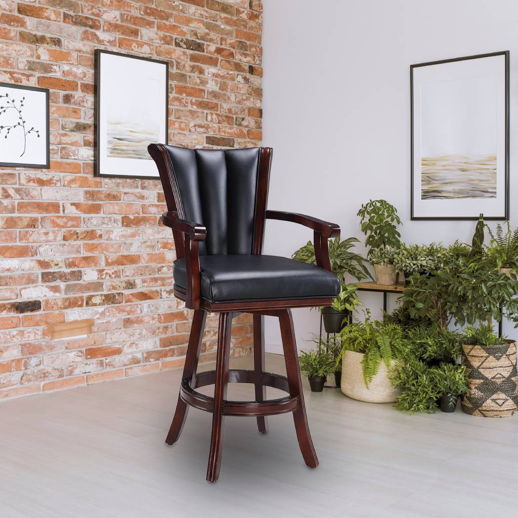 The Avondale 32″ Swivel Bar Stool offers the quality of finely crafted furniture at an exceptional price. The elegantly designed frame is handcrafted from solid hardwoods featuring extra wide seat cushions upholstered in a beautiful black faux leatherette material. High-quality components combine to create a timeless bar stool design, built for comfort and strength. The Avondale’s classic lines easily go well with a variety of different indoor settings.