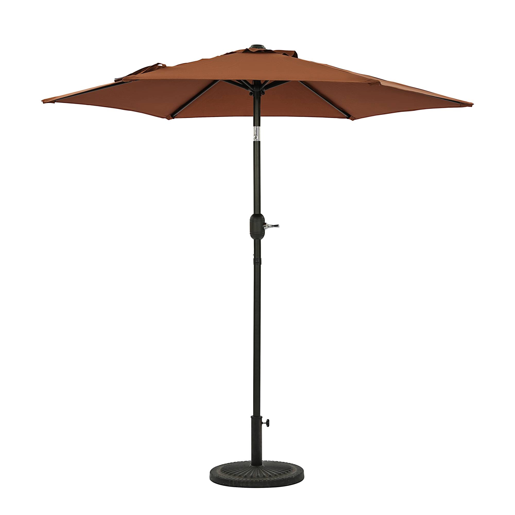 Entertain anywhere with the Bistro 7.5-ft Hexagon Market Umbrella. Built on a smaller scale, this umbrella is a perfect fit for small patios, decks, or balconies. A polyester canopy provides 41 square feet of optimal shade with a minimal footprint. Simply turn the crank, push to tilt, and escape the sun with ease. Lightweight but sturdy, the 6-rib steel canopy system and 1.5-in steel pole have a bronze, powder-coated finish that is rust-resistant. Vented canopy construction ensures stability when it’s breezy. The Bistro umbrella is backed with a 1-year warranty on the polyester fabric canopy and a 1-year warranty on the pole and structure. Base sold separately.