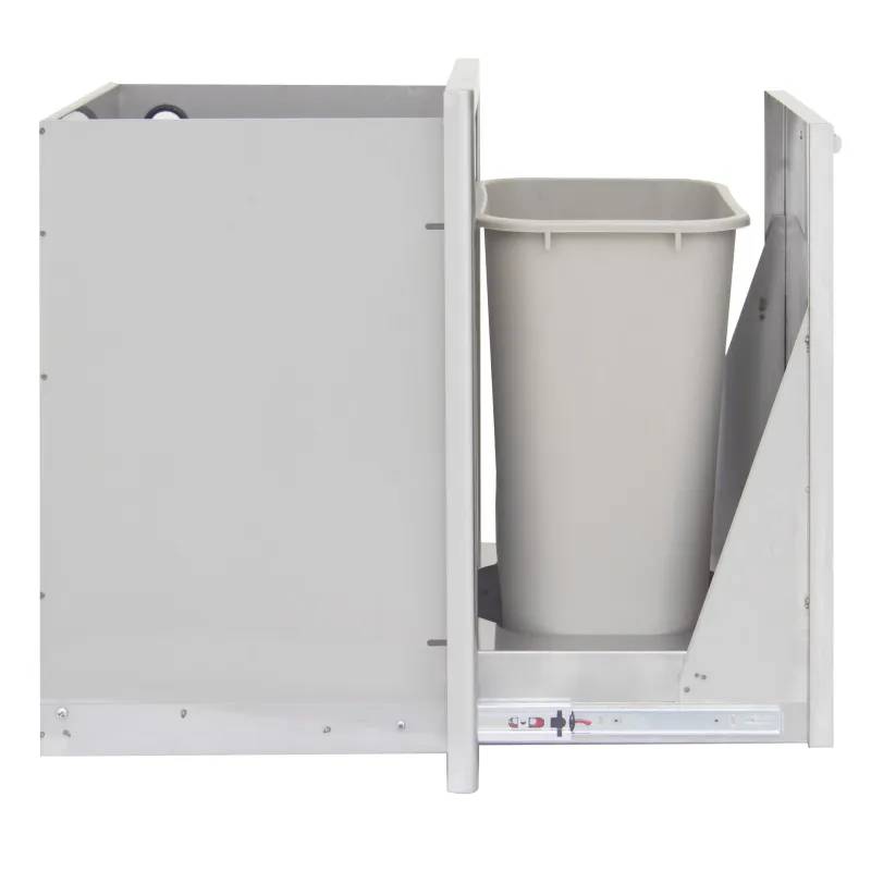 - The Blaze trash/propane tank storage drawer Stainless steel construction is durable in outdoor conditions