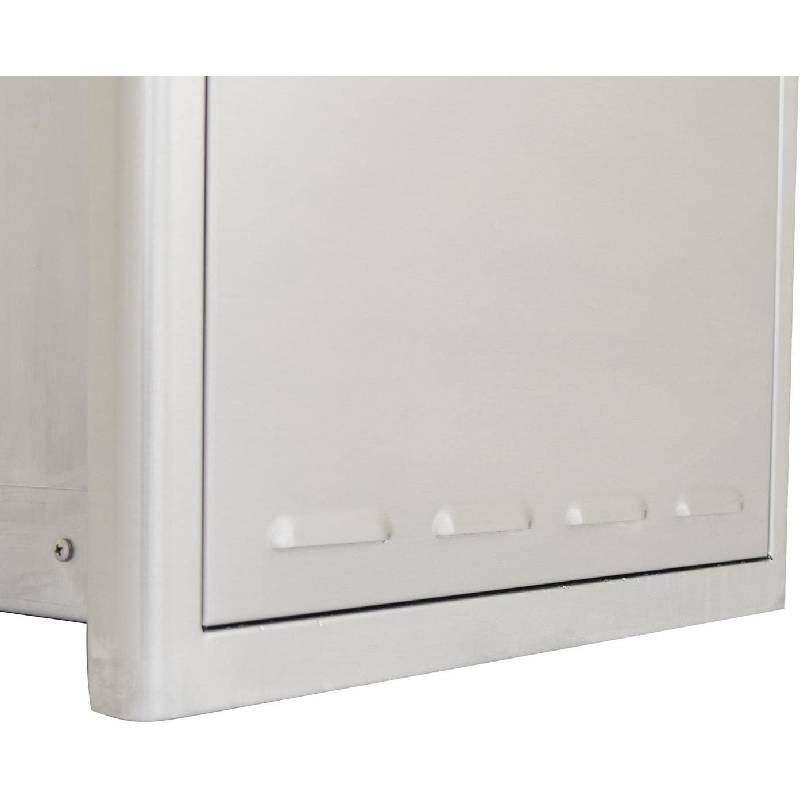 The Blaze trash/propane tank storage drawer features commercial grade 304 stainless steel construction to withstand outdoor elements and a unique, completely rounded bevel design that enhances strength and durability. Conveniently store your propane tank for easy access to the cylinder, or stow away your trash bin to reduce clutter in your outdoor area. This quality outdoor kitchen trash/propane tank storage drawer is accented with a curved handle.