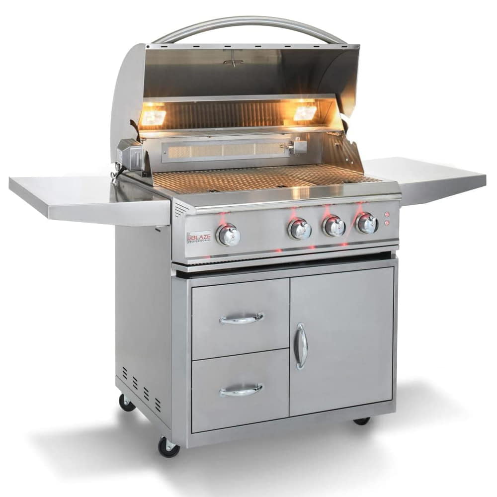 The Blaze Professional 34 Freestanding 3-Burner Gas Grill and Cart takes outdoor cooking to a whole new level. This deluxe grill offers innovation and style, blended with cooking features that make it a lasting part of your outdoor entertainment area. Its rugged Stainless Steel construction features a brushed steel finish that looks great in any outdoor décor.