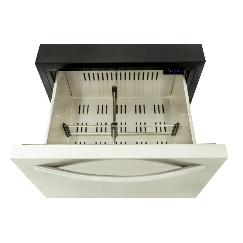 The Blaze 5.1 Outdoor Rated Double Drawer Refrigerator is the ideal space saving solution for outdoor kitchens built into your island. With 5.1 cubic feet of space, this refrigerator has ample room and can hold up to 154 cans! The double drawers include adjustable and removable drawer dividers, letting you customize the interior. This refrigerator also includes high-quality soft-close drawers! The 304 Stainless Steel design pairs well with all of your other outdoor kitchen products, and includes a digital thermostat and temperature display. The Blaze Double Drawer Refrigerator also includes interior LED lighting for entertaining at night.