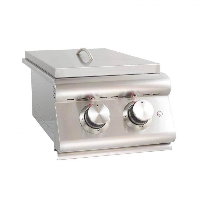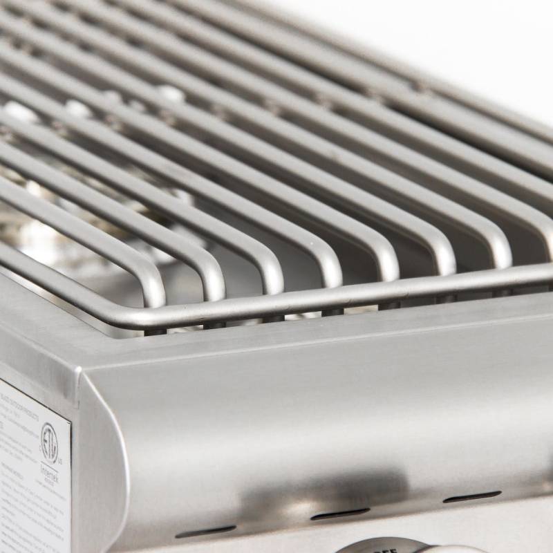 The Blaze Premium LTE Natural Gas Double Side Burner features two heavy duty 12,000 BTU brass plated burners for enhanced performance and superior heat retention. The signature red lights match the styling of Blaze Premium LTE grill and enhance your outdoor entertaining. This precision cut side burner is made of stainless steel and will provide you years of outdoor cooking enjoyment. The side burner features a raised cooking grate which helps provide better airflow around the burner for optimal cooking performance. The stainless steel cover protects the burner when not in use and features a curved handle to match other Blaze products. Ignition is made easy with push and turn knobs that offer a reliable flame with every start and the full-width drip tray makes clean up a breeze. If you are looking to create a gourmet outdoor meal complete with soups or side dishes, a built-in side burner is the ideal addition to your outdoor kitchen.
