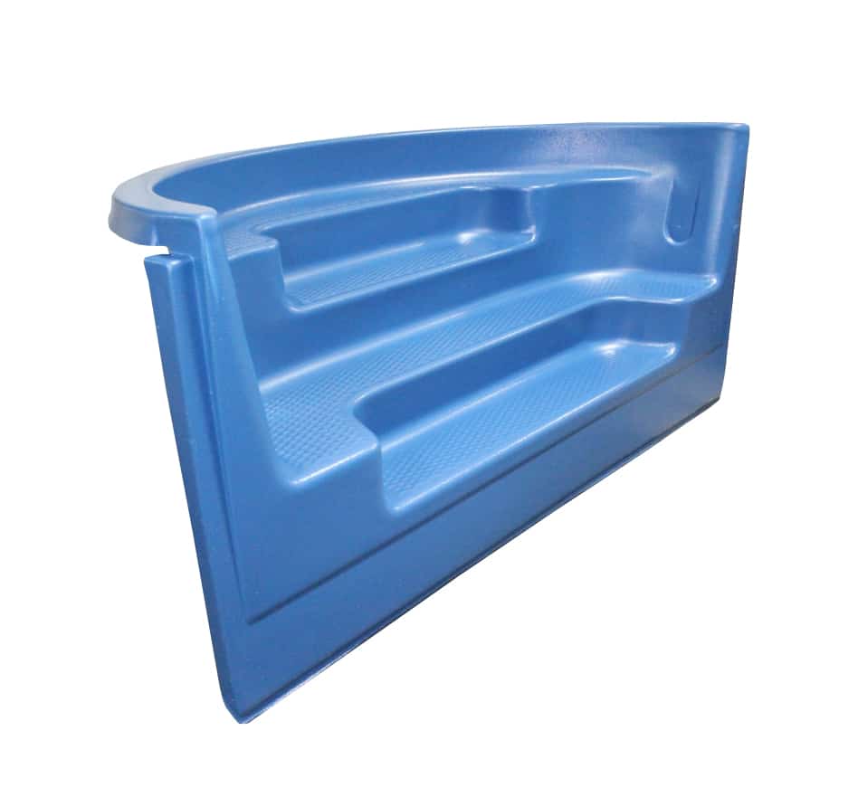 Our blue swimming pool steps are vacuum molded from Luran®, a state-of-the-art thermoplastic material that offers strength and durability superior to traditional steps made of vinyl-coated metal or acrylic and fiberglass. Because they combine exceptionally high impact resistance with an integral, one-piece design, Cornerstone steps will last for years without corroding, splintering, de-laminating or puncturing. In addition, outstanding resistance to UV light and to extreme weather and ground conditions means even greater longevity. And that means fewer service call-backs and more satisfied customers.