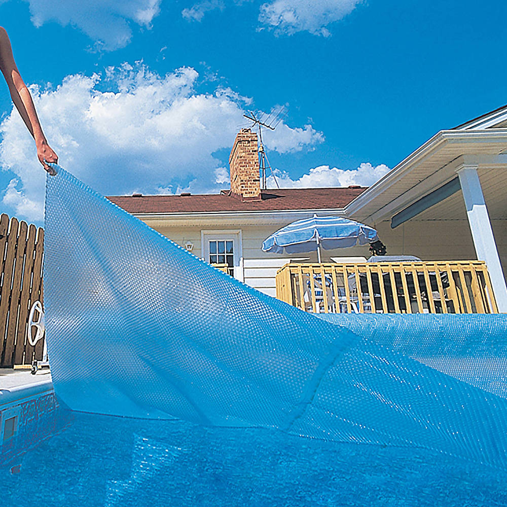 The durable Blue Wave Rectangular In-Ground Solar Blanket provide effective warmth for your swimming pool. Thermal bubbles can increase your pool’s temperature up to 15 degrees Fahrenheit. These innovative cells trap and transfer heat, keeping your pool warm even on cloudy days and cool nights. For optimal heating, the transparent, blue polymer allows maximum sunlight to reach the depth of the water. Our UV-protected blankets are designed to withstand years of direct sunlight. Keep your in-ground swimming pool warm with a Rectangular 12-mil Blue or a 14-Mil Clear Solar Blanket. Designed to last, and backed by a 5-Year Warranty, our solar blankets are designed to outlast and out-perform Intex pool covers. Built with ease and simplicity in mind a solar blanket is for the person looking for simplicity and ease factors when needing to meet their pool heating needs. Get yours today from Pool Warehouse!