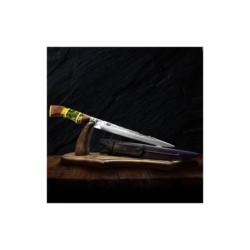 Whether you are a professional chef or just someone who likes to mess around in the kitchen, a proper knife is essential. Brazilian Flame is offering you the best unique knives that are not only amazing for slicing, dicing, and julienning, but also attractive and durable. The 10-inch Treasure Luxor knife features a 420c stainless steel, razor sharp blade that is perfect for use with meat and vegetables alike. The handmade handle composed of Imbuia wood gives an excellent grip with a unique, aesthetic appeal. A genuine leather sheath completes the set by giving you a safe place to keep the knife while not in use. A great knife is the best way to prepare your food quickly and safely, so invest in Brazilian Flame for the ultimate cooking experience.