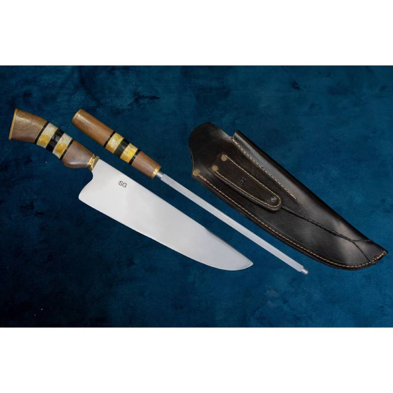 Whether you are a professional chef or just someone who likes to mess around in the kitchen, a proper knife is essential. Brazilian Flame is offering you the best unique knives that are not only amazing for slicing, dicing, and julienning, but also attractive and durable. The 10-inch Chef Picanha knife features a 420c stainless steel, razor sharp blade that is perfect for use with meat and vegetables alike. The handmade handle composed of Imbuia wood gives an excellent grip while the resin inlaid design gives a unique, aesthetic appeal. A sharpener is also included for easy sharpening whenever you need it and can be used with any knife. A genuine leather sheath completes the set by giving you a safe place to keep the knife while not in use. A great knife is the best way to prepare your food quickly and safely, so invest in Brazilian Flame for the ultimate cooking experience.