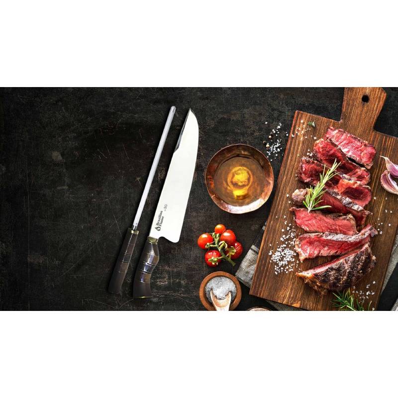 - This set includes a sharpener made with Chrome Vanadium steel, ensuring that your knife will be around for future generations to enjoy. This knife is made with handmade, high-quality 420c stainless steel used in surgical applications. It is hand-finished to a mirror polish and provides military-grade strength, lifelong durability, precise cut, razor-sharp blade, and a low level of maintenance.