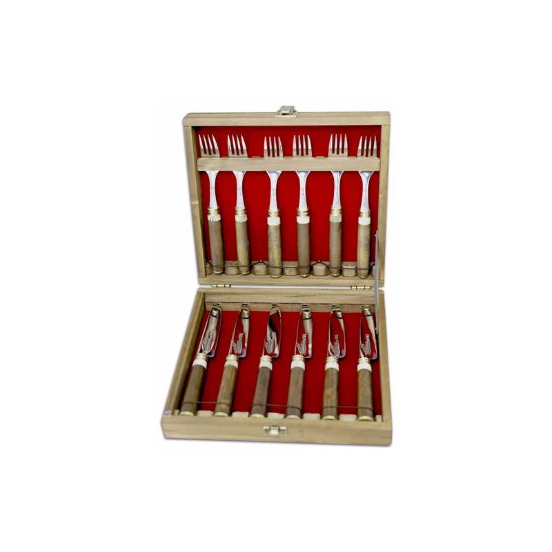 Brazilian Flame 12 Pc Fork Knife Set 5mm Horn and Imbuia Handle