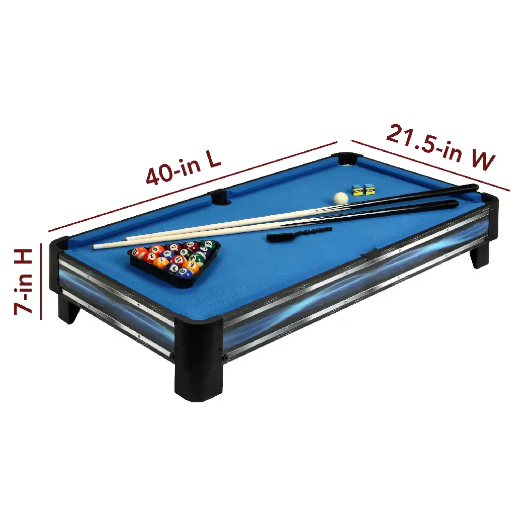 - With a 40” size, this pool table easily fits on your dining room or coffee table
