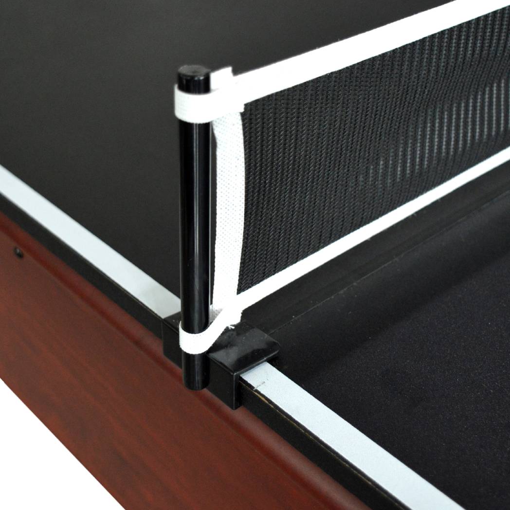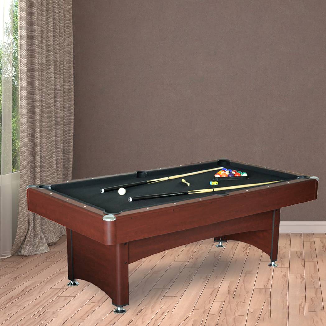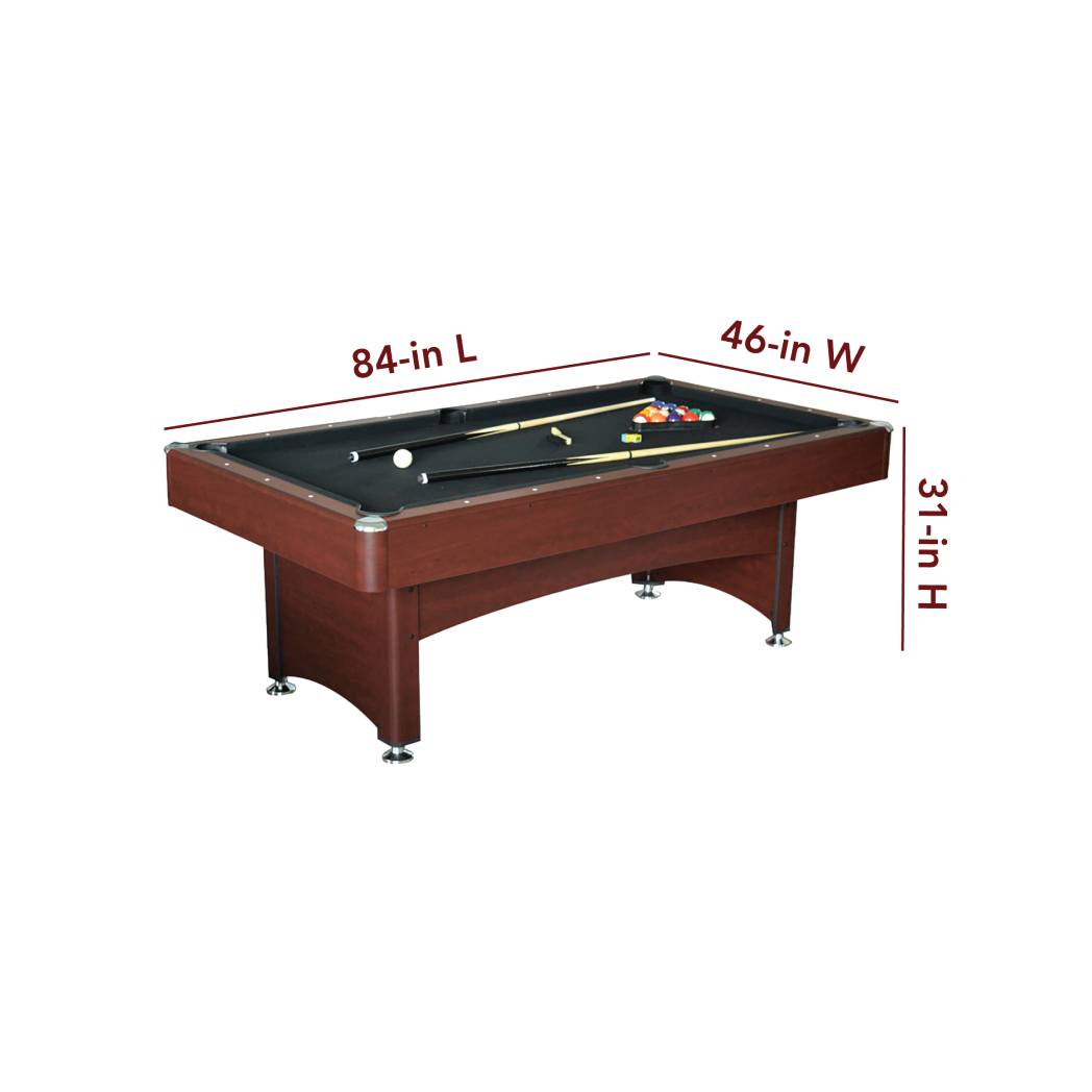 The Bristol 7 Ft. Pool Table with Table Tennis Top has the perfect combination of quality features and a compact size to easily fit in any room. The combination of the dark cherry melamine cabinet finish and chrome-plated corner caps instantly creates a stylish addition to any game room. Durable, black, plastic-molded drop pockets and EVA rubber cushions for accurate and fastball rebound round out the great features on this billiard table. The included quick change over table tennis top adds another dimension of competitive fun within the same space. Certain to provide hours of competitive gaming fun for you, your friends and family!