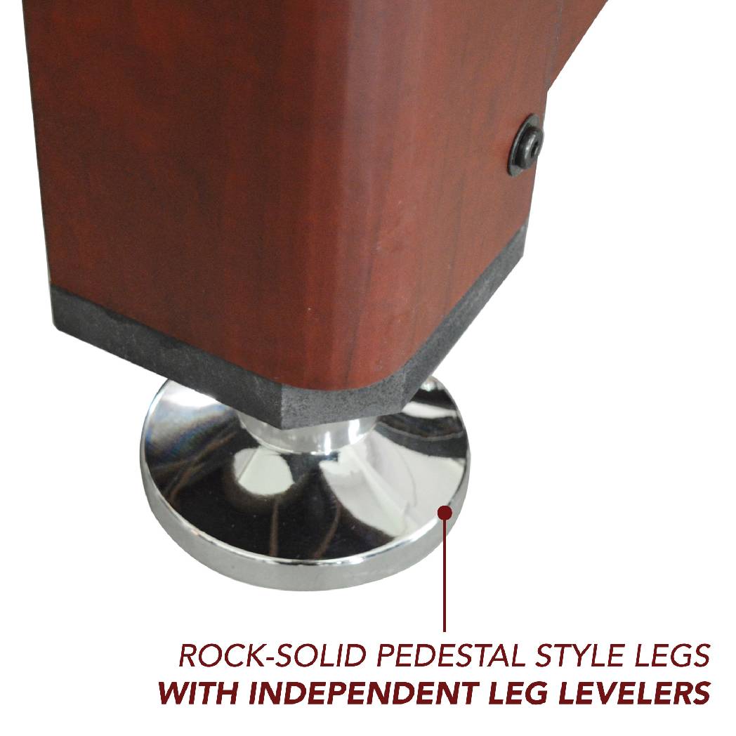 - Rock-solid pedestal style leg design with independent leg levelers for added stability