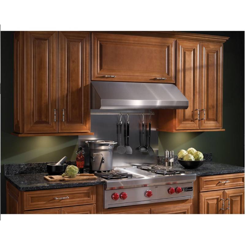 The Broan-NuTone E6442SS Elite Series 42-inch Pro-Style Under Cabinet Range Hood with Integrated Internal Blower is fresh and modern, yet designed to easily complement popular pro-style cooking products. Designed to duct either horizontally or vertically, true professional style and performance has never been easier to bring home. This range hood boasts professional features such as a powerful blower, baffle filters with handles, brilliant two-level halogen lighting and variable speed controls with speed memory. And while you won’t see this feature it is hard to miss the quiet operation. Plus, Heat Sentry detects excessive heat and adjusts blower speed automatically. When you want professional style and performance, trust BROAN to cover every detail!