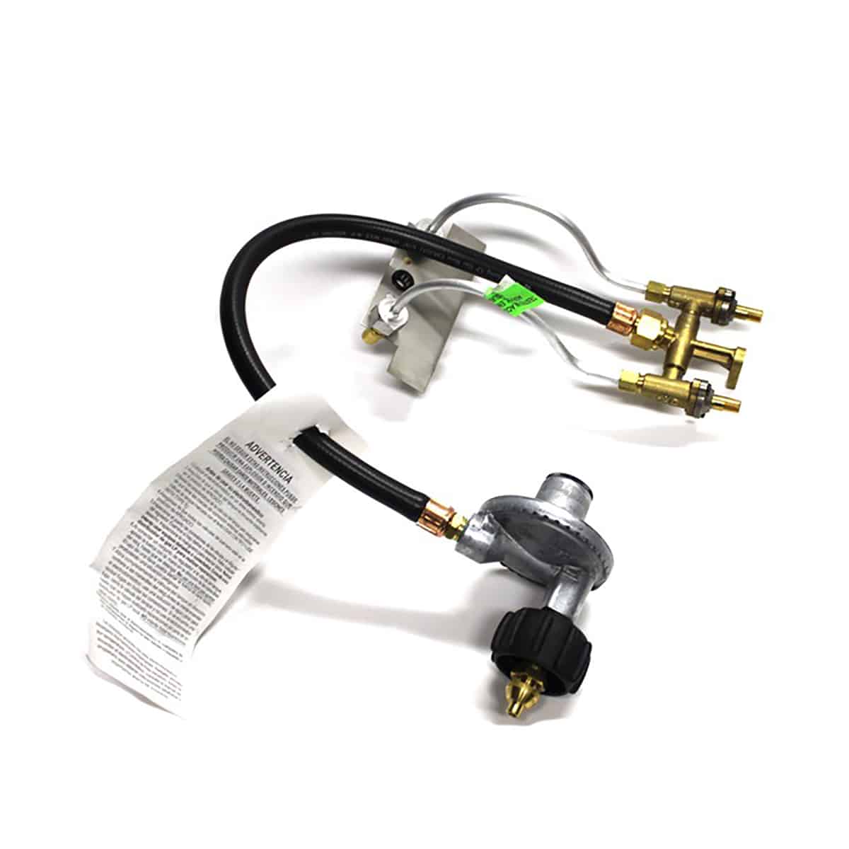 The Broilmaster Propane Gas Twin Valve Assembly is a twin-valve assembly that fits all Broilmaster liquid propane gas grills built after 2002 except T and R series. Includes regulator and hose.