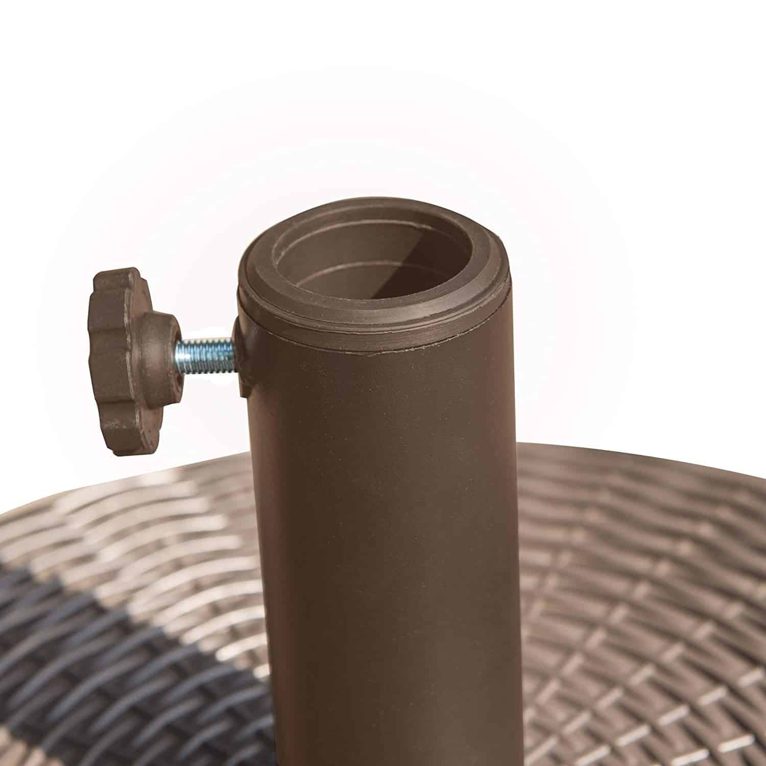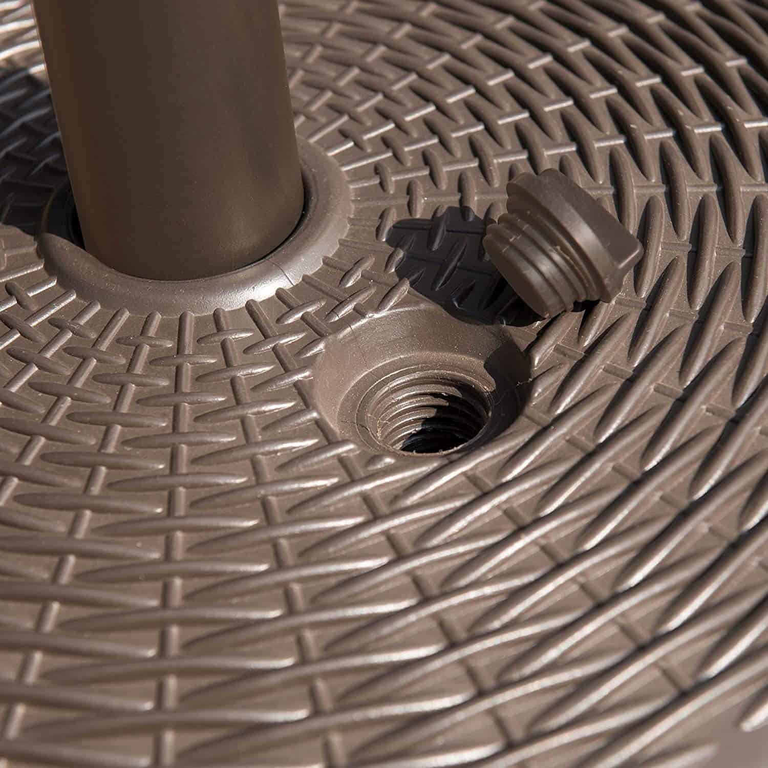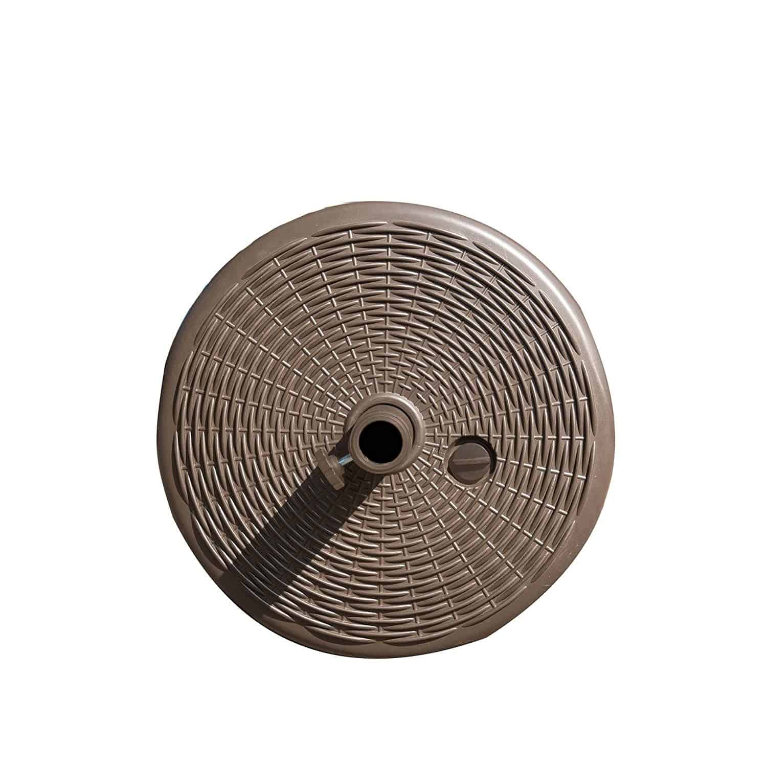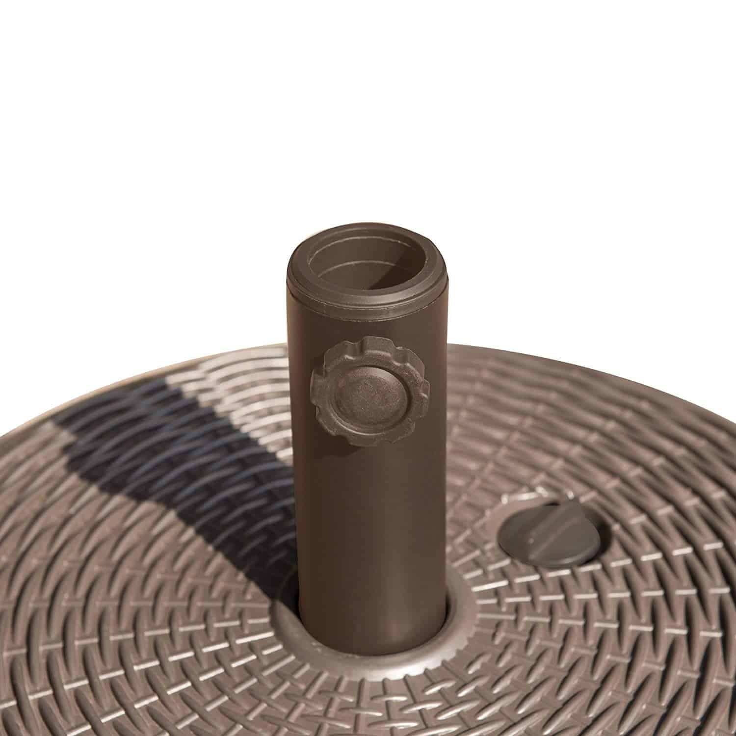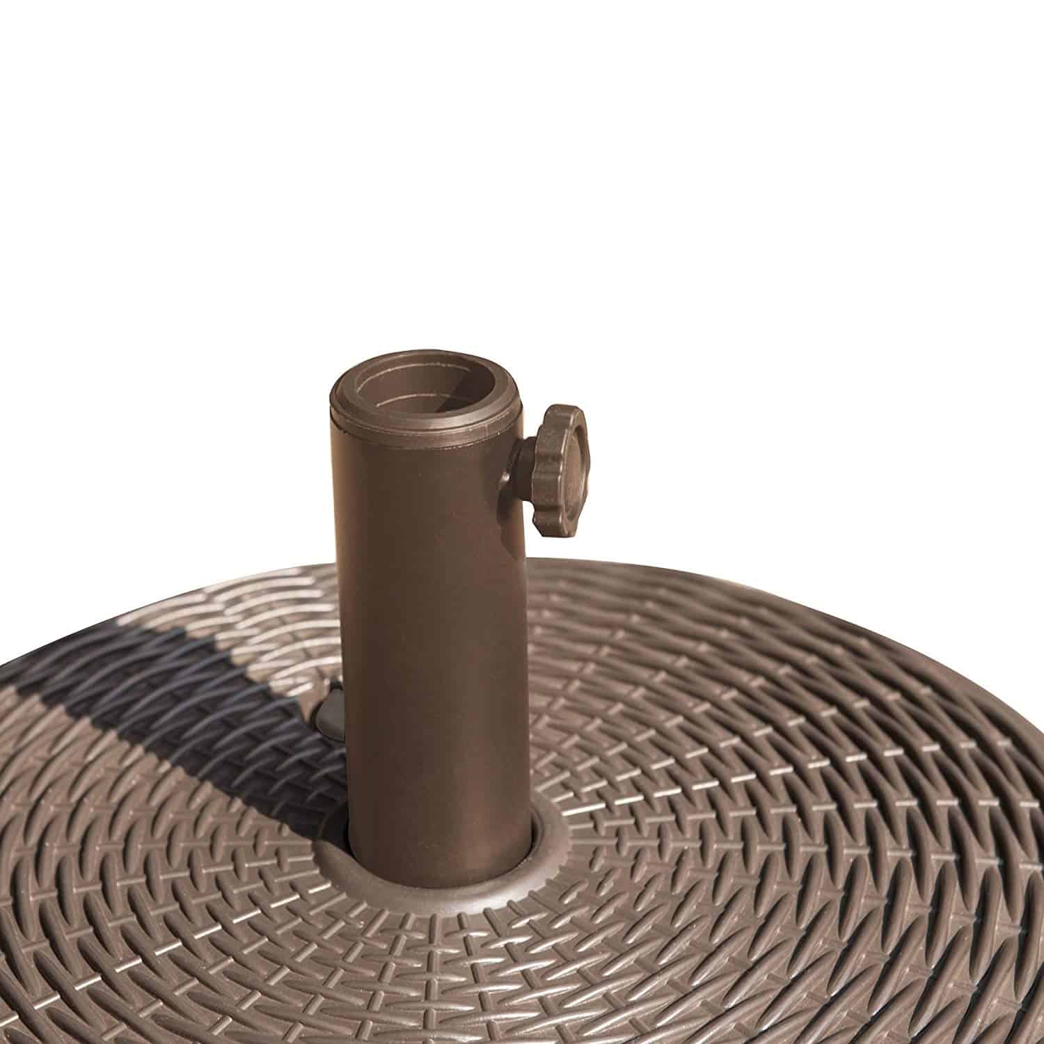 - High-class design – this umbrella base features a wicker pattern with a rich brown finish. It’s Small enough to fit under your Table, but stunning enough show off with your free-standing umbrella.