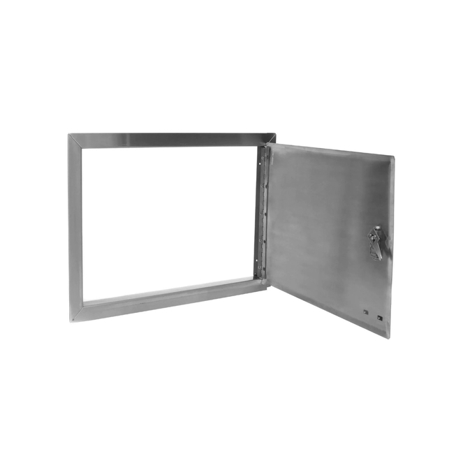 The Horizontal Access Door has a lock and stainless steel frame for propane tanks or gas lines.