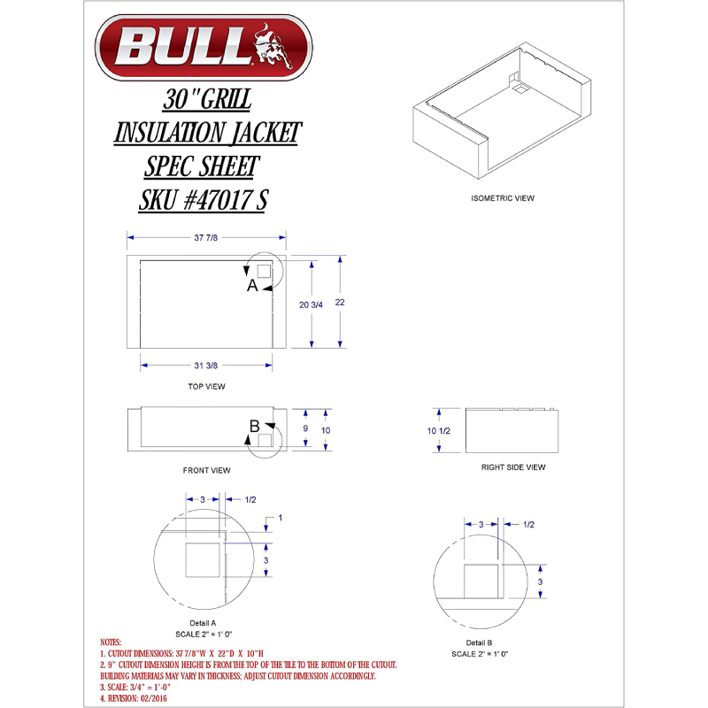 Bull 30″ Stainless Steel Grill Jacket Features: