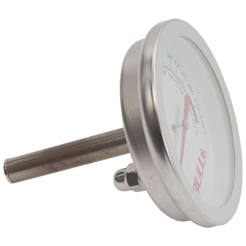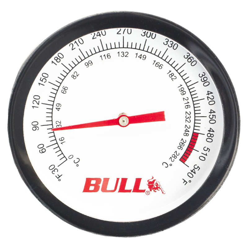 The Bull BBQ (16509) replacement analog thermometer is constructed of durable 304-grade stainless steel and fits all Bull BBQ gas grills (any model, any size). To install, simply unscrew your old Bull thermometer (16509) out from the grill and slide the new thermometer in. Installation takes less than 2 minutes.
