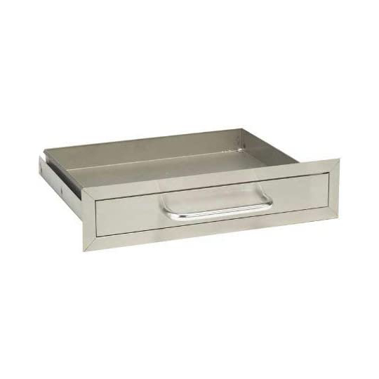 The Single Drawer has a 304 Grade 16 Gauge Stainless Steel Construction and slides out easily for stylish storage of your grilling accessories.